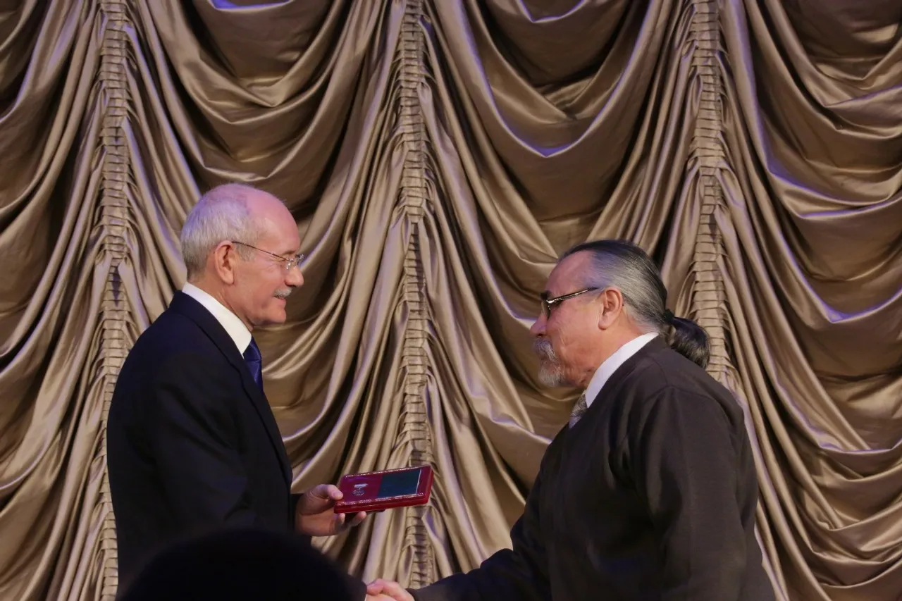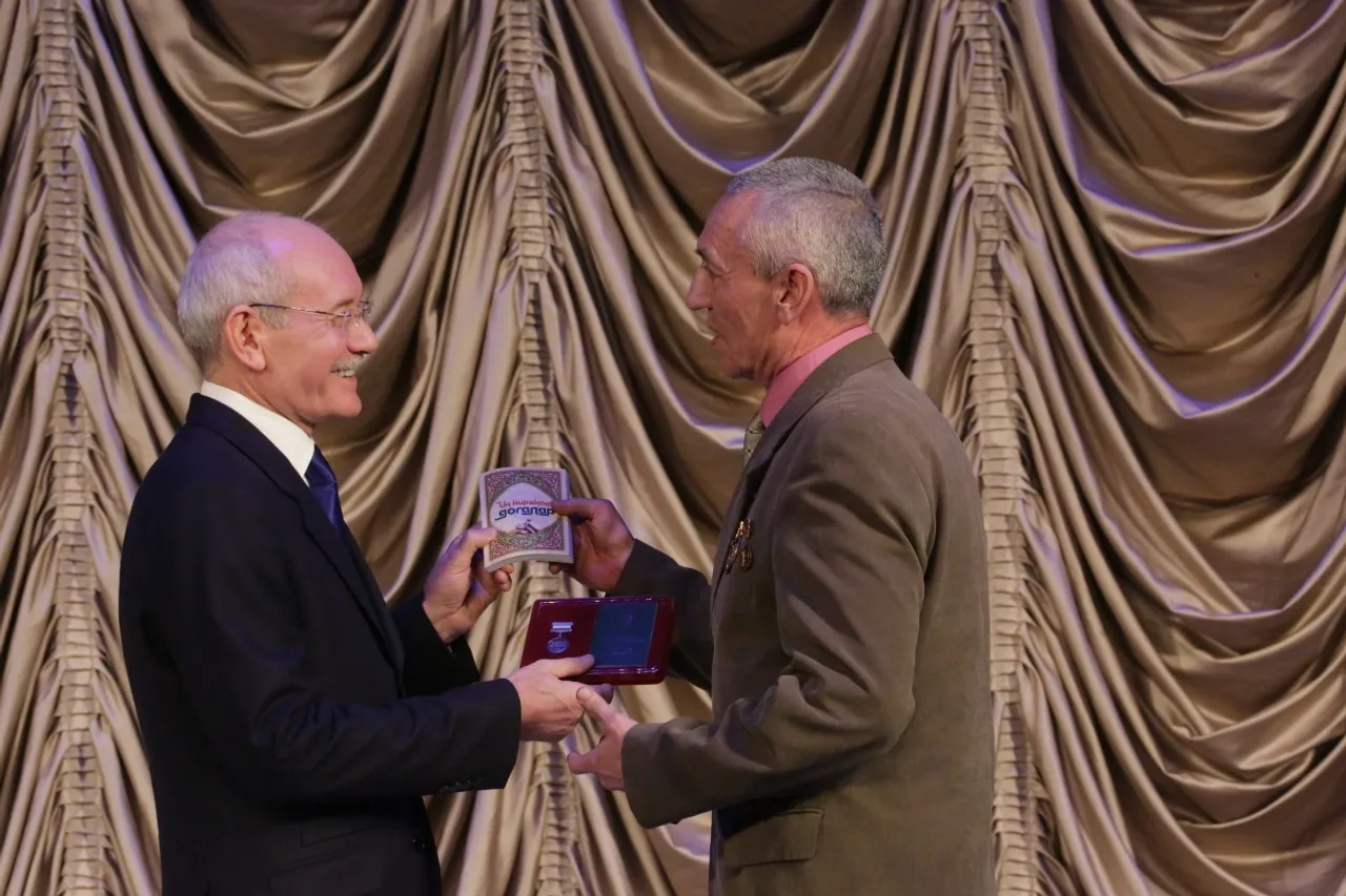 Тантаналы сарала Мәҙәниәт йылына йомғаҡ яһап, Рөстәм Хәмитов 11 билдәле артистарға, рәссамдарға, музыканттарға, педагогтарға һәм башҡа мәҙәниәт эшмәкәрҙәренә дәүләт наградалары тапшырҙы.