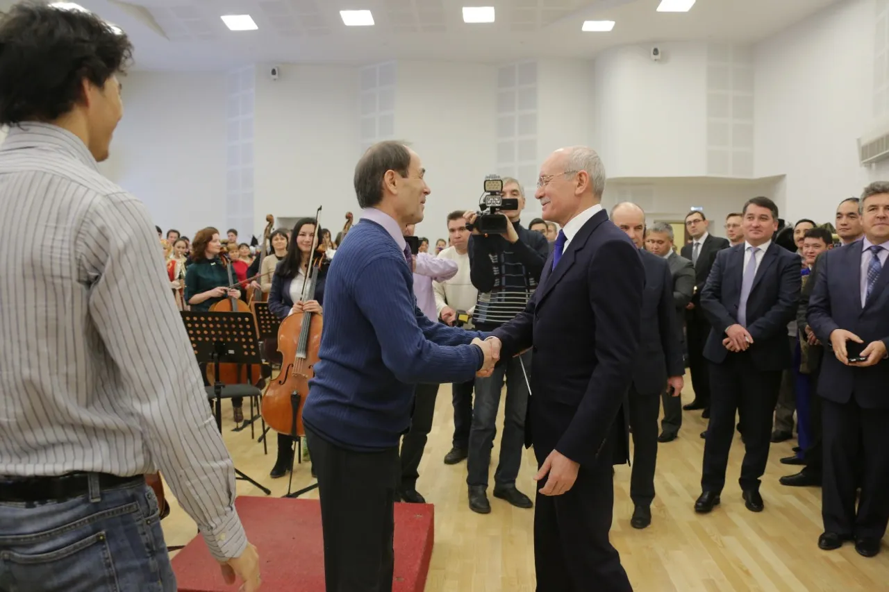 Республика етәксеһе беренсе һәм өсөнсө ҡаттарҙағы фойены ҡараны, камера залының акустик мөмкинлектәрен баһаланы, унда мәҙәниәт министры Әминә Шафиҡова Россиниҙың фортепиано өсөн һалынған «Севильский цирюльник» операһынан өҙөк башҡарҙы. Дәүләт концерт залы асылыу айҡанлы Милли симфоник оркестр залында музыканттар башҡорт композиторы Айрат Кәримовтың вальсын уйнаны.