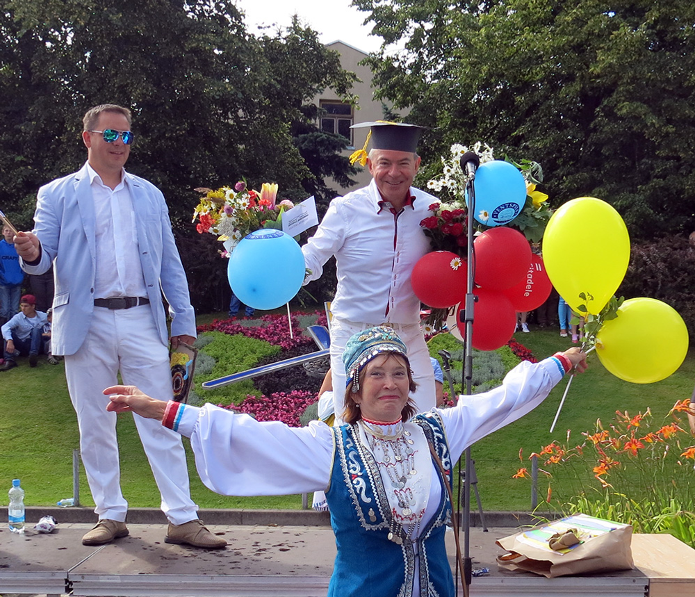 Башҡортостан исеменән байрам ҡунаҡтарын Башҡортостандың ЮНЕСКО эштәре буйынса комитетының Латвиялағы вәкиле Рина Хәмитова сәләмләне. Ул яҡташтарына башҡорт мәҙәниәтен һаҡлауға һәм үҫтереүгә, халыҡтар араһында дуҫлыҡты һәм хеҙмәттәшлекте нығытыуға ҙур өлөш индергән өсөн рәхмәт белдерҙе. Был көндә Вентспилстың төп сәхнәһендә Латвияның башҡорт диаспораһынан опера йырсыһы Элина Митина һәм «Конфетти» балалар бейеү ансамбле сығыш яһаны. Коллективтың етәксеһе Ләлә Басманова – шедеврҙар, шул иҫәптән башҡорт бейеүҙәрен ҡуйыусы танылған хореограф.