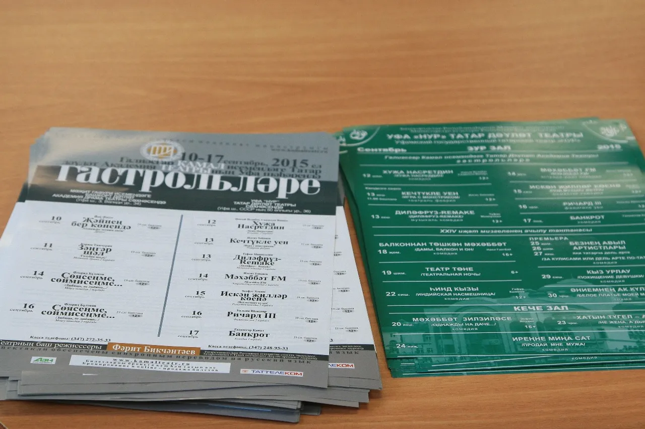 ӨФӨ, 2015 йыл, 27 август. /«Башинформ» мәғлүмәт агентлығы, Ләйлә Аралбаева/. 10 сентябрҙән 17-нә тиклем Өфөлә Ғ.Камал исемендәге Татар дәүләт академия театры гастролдәре