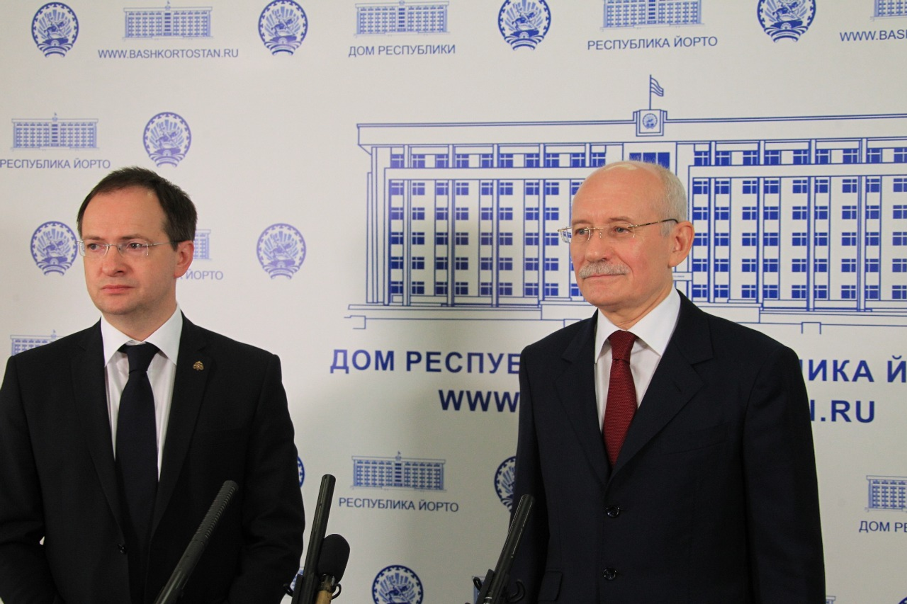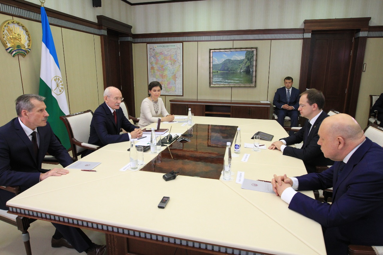 ӨФӨ, 2016 йыл, 24 июнь. /«Башинформ» мәғлүмәт агентлығы, Александр Смирнов/. 23 июндә Республика йортонда Башҡортостан Башлығы Рөстәм Хәмитов менән Рәсәйҙең мәҙәниәт министры Владимир Мединскийҙың осрашыуы булды. Яҡтар төбәктә мәҙәниәтте һәм сәнғәтте үҫтереү мәсьәләләрен тикшерҙе.