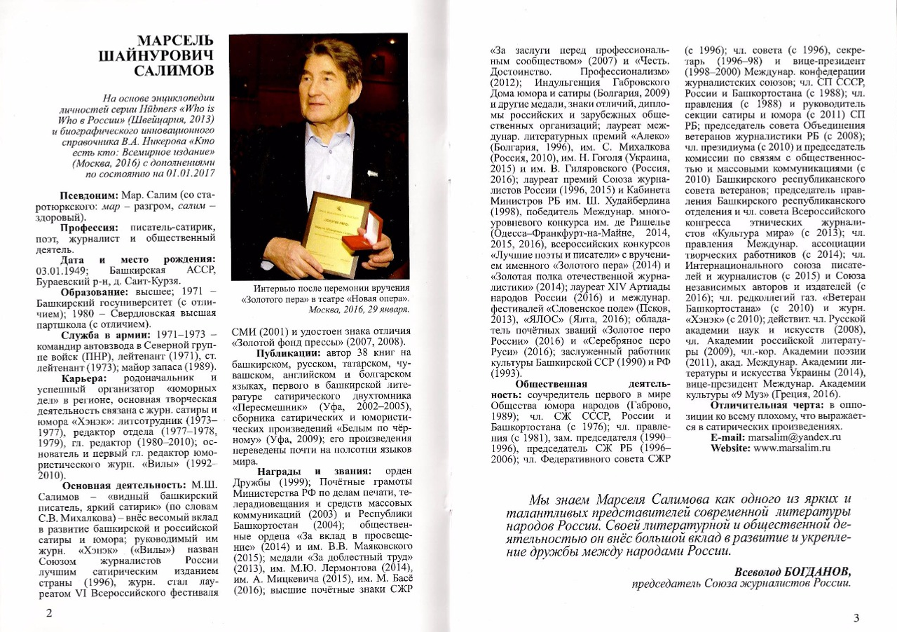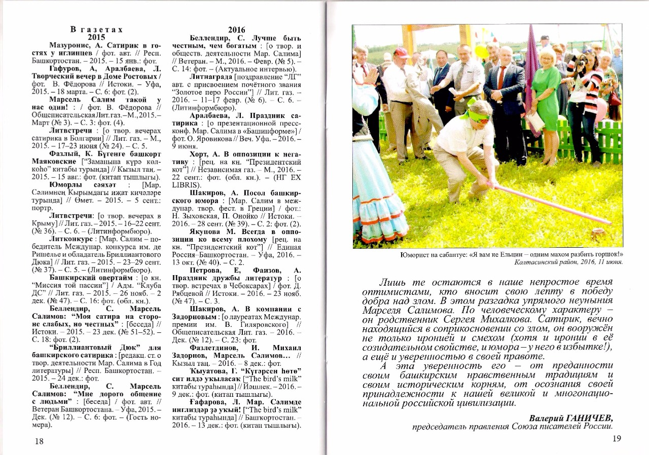 донъя күрҙе. «Белая река» нәшриәтендә баҫылған йыйынтыҡ «Марсель Сәлимов. Журналист, шағир, яҙыусы-сатирик, йәмәғәт эшмәкәре» китабының дауамы булып тора.