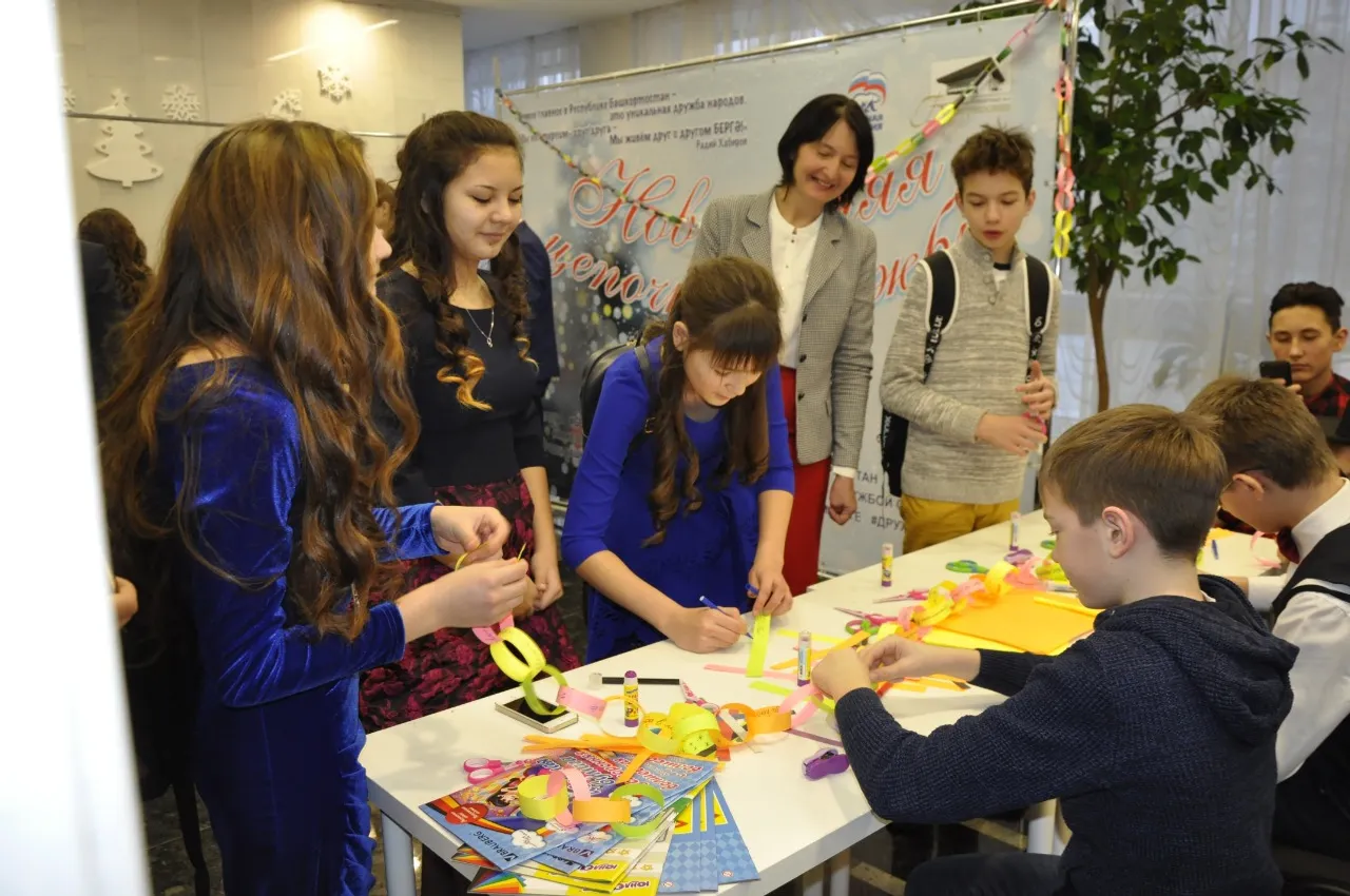 «Башҡортостан» концерт залына килеүселәр бер нисә аҙна буйына теләһә ниндәй телдә дуҫлыҡ һәм изгелек тураһында һүҙҙәр яҙылған ҡағыҙ ҡулсалар йәбештерҙе. Яңы йыл шыршыларында ҡатнашыусылар акцияла ихлас ҡатнашты.