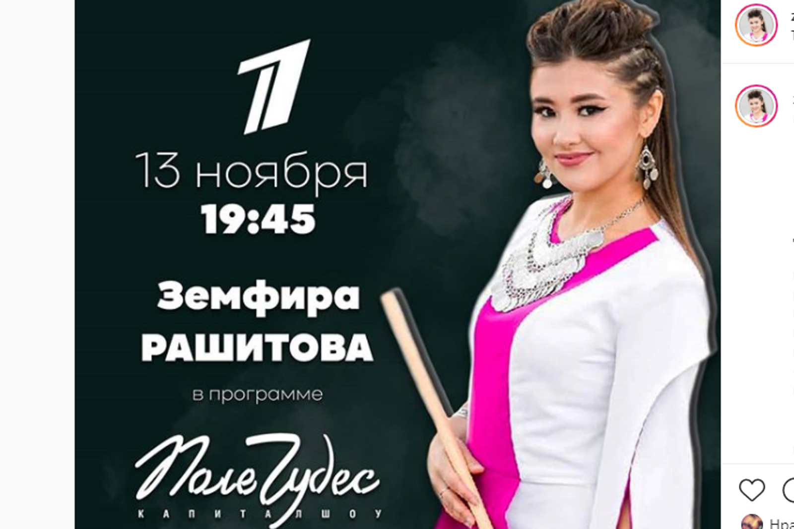 «Үҙем ошо юлдарҙы яҙам, үҙем тулҡынланам! Мин бүләк алырға түгел, ә Республикабыҙҙы лайыҡлы итеп күрһәтергә барҙым! Ҡурай моңон ишеттерергә һәм халҡыбыҙ мәҙәниәте тураһында мөмкин тиклем күберәк һөйләргә. Бынан нимә килеп сыҡҡанын бергәләп ҡарарбыҙ! Ярҙам күрһәткән Мәҙәниәт министрлығына һәм Халыҡтар дуҫлығы йортона рәхмәтлемен!», — ти Земфира.