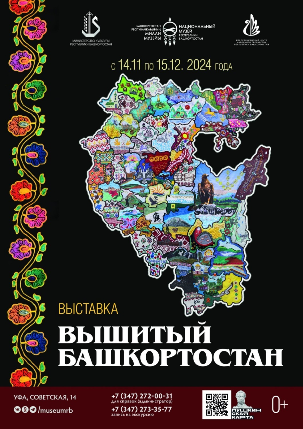 14 ноябрҙә Милли музейҙа «Нағышлы Башҡортостан» күргәҙмәһе асыла. Экспозицияла 2024 йылда ошо уҡ исемдәге республика фестивалендә ҡатнашҡан райондарҙың карталарын күрергә мөмкин.