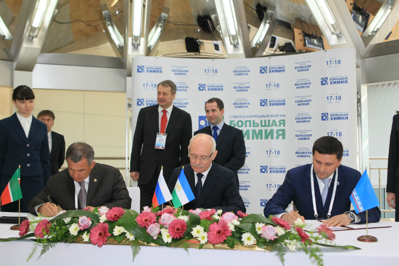 Уға Башҡортостан Президенты Рөстәм Хәмитов, Татарстан Президенты Рөстәм Миңнеханов һәм Ямал-Ненец автономиялы округы губернаторы Дмитрий Кобылкин ҡултамғаһын ҡуйҙы. Документ Волга буйы нефть һәм газ химияһы кластеры предприятиеларында углеводород сеймалын һөҙөмтәле эшкәртеүҙе тәьмин итеүгә йүнәлтелгән.