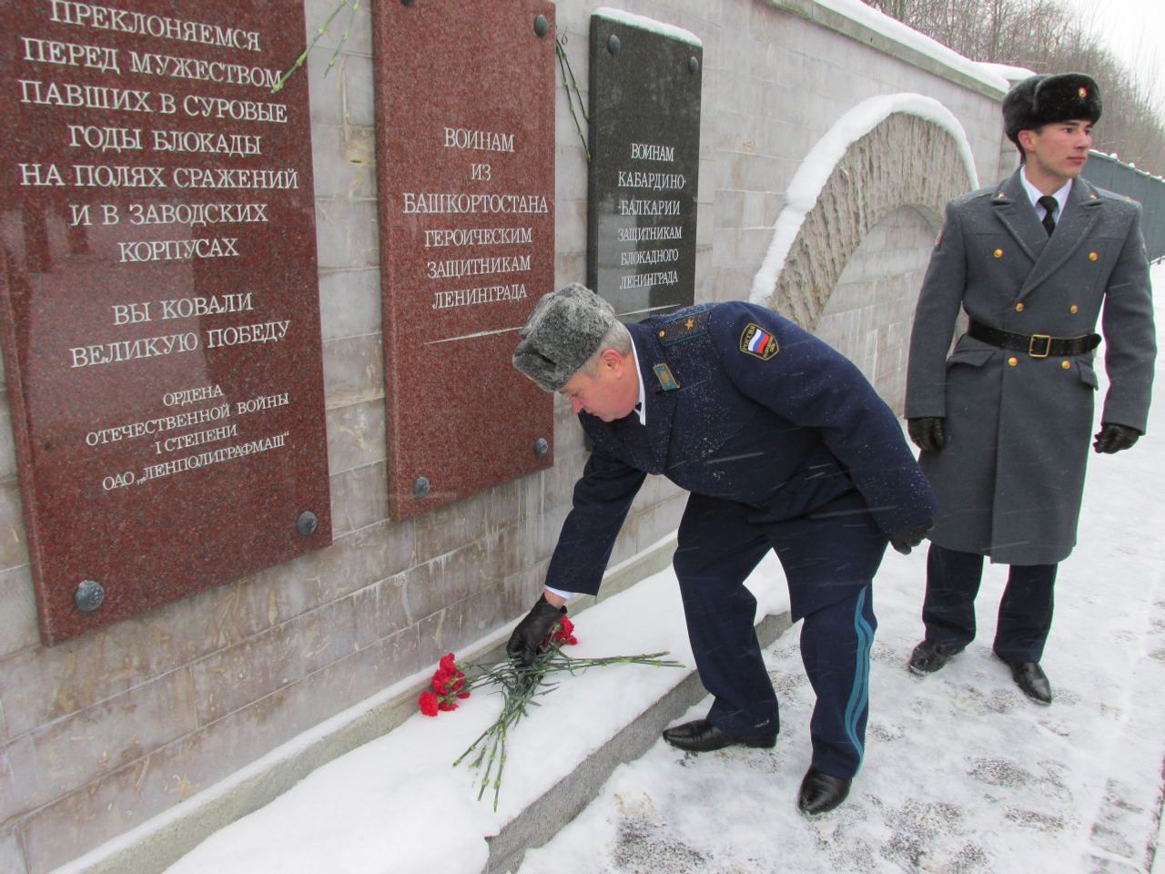 БР-ҙың Санкт-Петербургтағы Даими Вәкиллегенең баш белгесе Мәүлиҙә Ильясова хәбәр итеүенсә, мемориаль стелаға Башҡортостан Республикаһы исеменән сәскә гөлләмәһе һалынды. Ленинградты батырҙарса яҡлаусы Башҡортостан яугирҙарының иҫтәлек таҡтаташына сәскәләр һалынды. Башҡортостан делегацияһы составында Башҡортостандан ветерандар, шулай уҡ С.М.Киров исемендәге Хәрби-медицина академияһы курсанттары, яҡташтарыбыҙ булды.