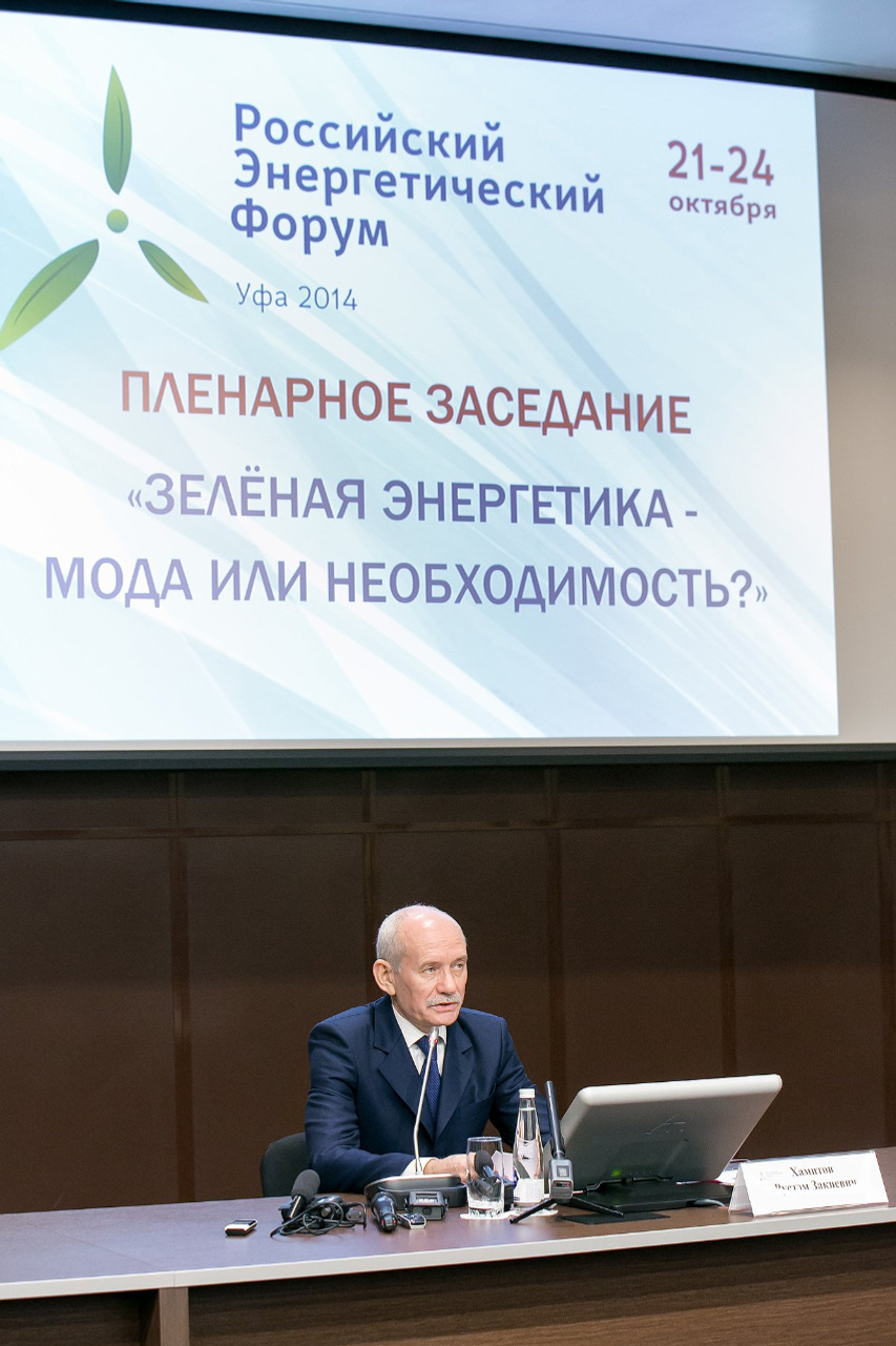 асылған XIV Рәсәй энергетика форумында булды. Республика башлығы Мәскәү энергетика университеты профессоры, техник фәндәр докторы Виктор Кудряв менән осрашты һәм «йәшел энергетика»ға арналған пленар ултырышта сығыш яһаны.