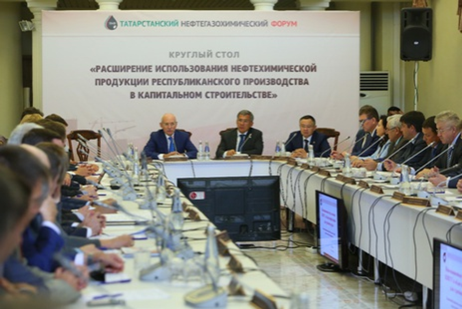 ӨФӨ, 2015 йыл, 3 сентябрь. /«Башинформ» мәғлүмәт агентлығы, Илья Спиридонов/. 2 сентябрҙә Ҡазанда Башҡортостан Башлығы Рөстәм Хәмитов менән Татарстан Президенты вазифаһын ваҡытлыса башҡарыусы Рөстәм Миңлеханов капиталь төҙөлөштә урында етештерелгән нефть химияһы продукцияһын ҡулланыуҙы киңәйтеүгә арналған түңәрәк өҫтәл үткәрҙе. Унда ҡатнашыусылар етештереү номенклатураһын һәм тауар һатыу баҙарын киңәйтеү маҡсатында Башҡортостан менән Татарстан предприятиеларының үҙ-ара килешеп эш итеүен нығытыу мәсьәләләрен тикшерҙе.