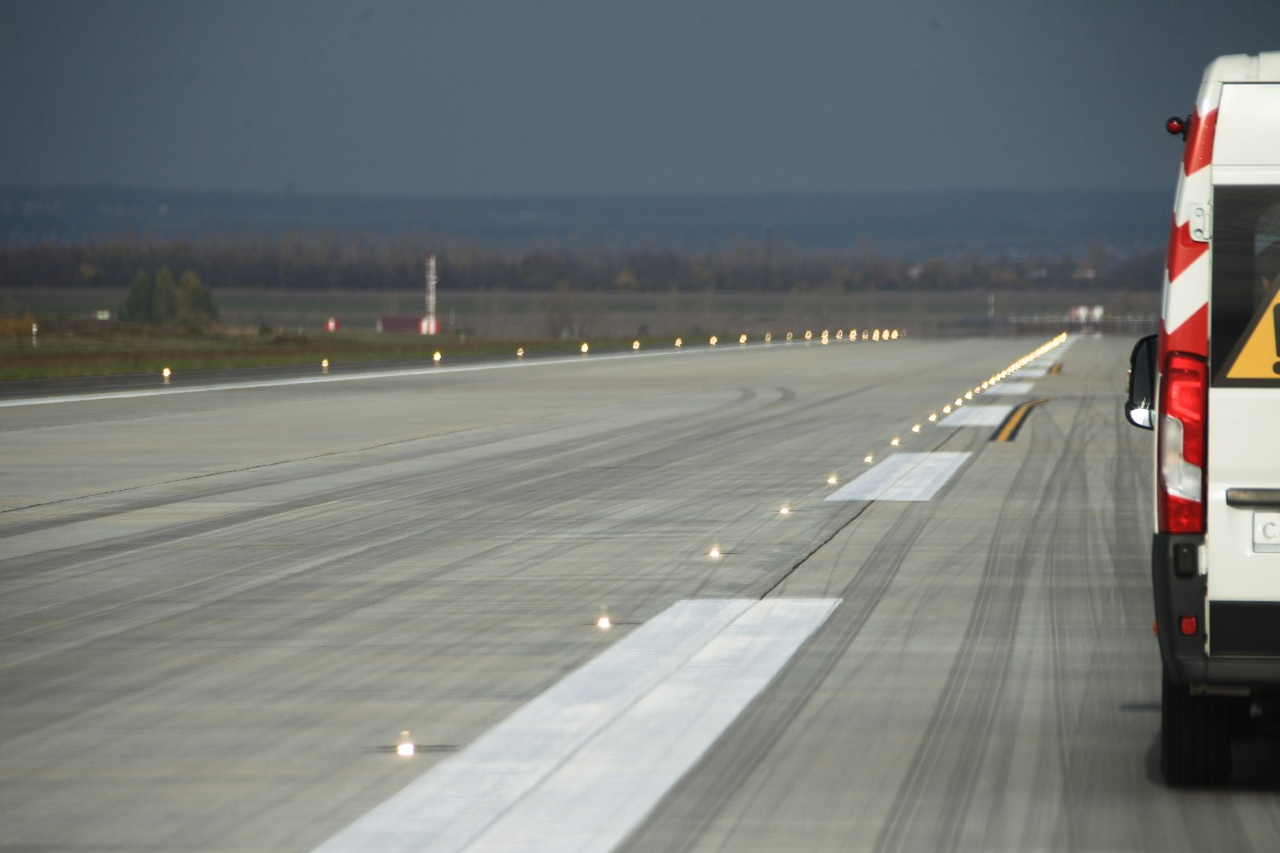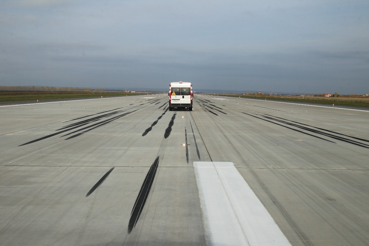 Рөстәм Хәмитов һәм Максим Соколов реконструкцияланған осоу-ултырыу һыҙатын ҡараны. Уны яңыртыу барышында һыҙаттың япмаһы яңыға алмаштырылды. Аэропорт Boeing 747, Boeing 777, «Руслан», Airbus A330 кеүек һауа судноларын ҡабул итә ала.
