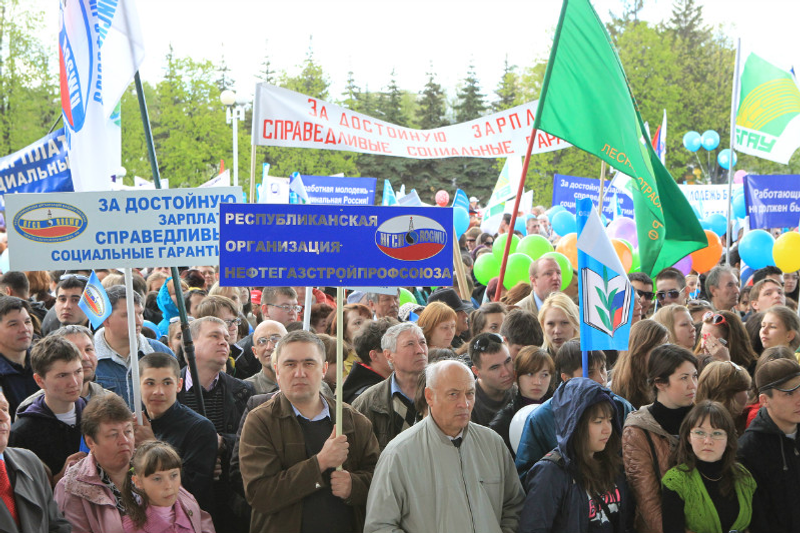 Башҡортостан хеҙмәтсәндәре Яҙ һәм хеҙмәт байрамын билдәләне. Республикалағы төп беренсе май акцияһы Өфөнөң В.И.Ленин майҙанында йәйелдерелде. Ул ҡала хакимиәте ярҙамында БР Профсоюздар федерацияһы менән ойошторолдо һәм «Ғәҙеллек төҙөргә бирәһеңме!» девизы аҫтында үтте.