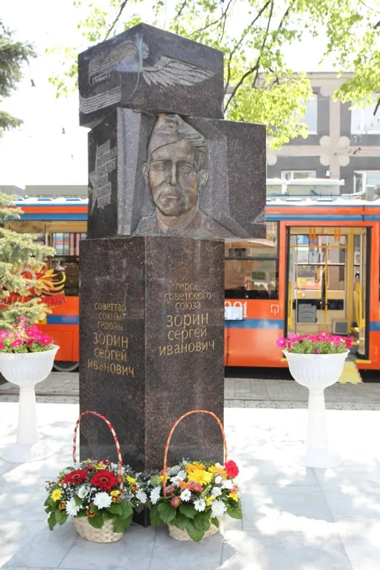 Артабан Рөстәм Хәмитов һуғыштан һуң 1-се депола директор булып эшләгән Советтар Союзы Геройы Сергей Зорин мемориалына сәскәләр һалды.