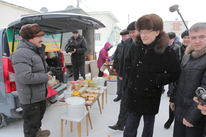 Урындағы халыҡ республика башлығынан йәрминкәләр үткәреү йолаһын артабан да дауам итеүҙе һораны. «Йәрминкәләр киләсәктә лә үткәреләсәк», тип ышандырҙы Рөстәм Хәмитов.