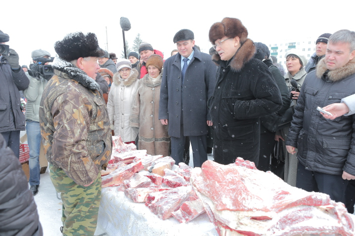 Артабан Президент ауыл хужалығы йәрминкәһендә булды, унда райондың ауыл хужалығы предприятиелары һәм фермер хужалыҡтары вәкилдәре үҙ продукцияһын тәҡдим итте. Рөстәм Хәмитов продукция ассортименты һәм уларға хаҡтар менән танышты, һатып алыусылар һәм йәрминкәлә ҡатнашҡан һатыусылар менән аралашты.