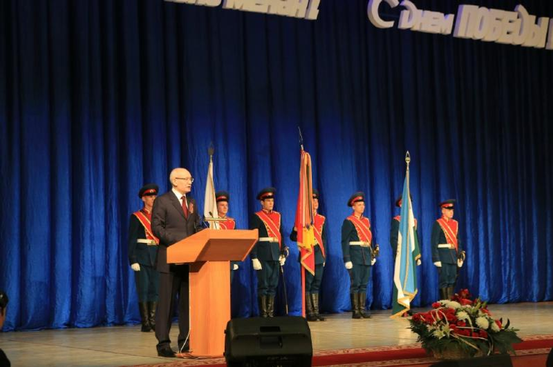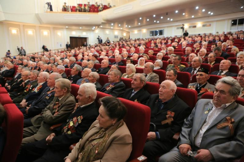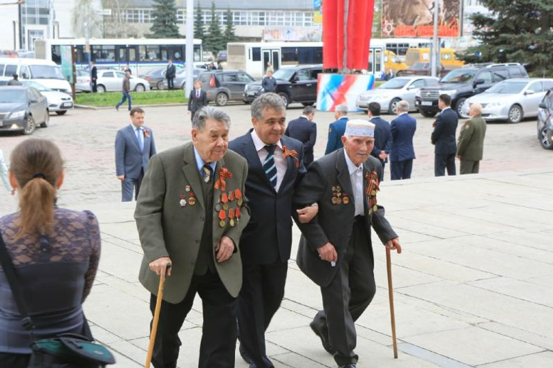 Башҡортостан Президенты Рөстәм Хәмитов ветерандарҙы Ҡала мәҙәниәт һарайында уҙған тантаналы йыйылышта Еңеү көнө менән ҡотланы. Һәләк булған геройҙарҙың яҡты иҫтәлеген йыйылған кешеләр бер минутлыҡ тынлыҡ менән иҫкә алды.