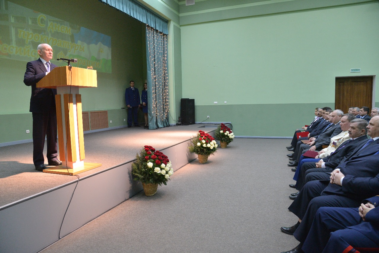 ӨФӨ, 2015 йыл, 13 ғинуар. /«Башинформ» мәғлүмәт агентлығы, Илья Спиридонов/. 12 ғинуарҙа Өфөлә Башҡортостан Башлығы Рөстәм Хәмитов Рәсәй Федерацияһы Прокуратура хеҙмәткәрҙәре көнөнә арналған тантаналы йыйылышта сығыш яһаны. Республика етәксеһе ведомство хеҙмәткәрҙәрен һәм ветерандарын һөнәри байрамдары менән ҡотланы һәм Башҡортостандың дәүләт наградаларын тапшырҙы.