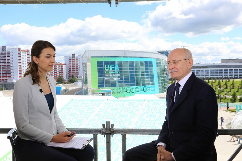 ӨФӨ, 2015 йыл, 8 июль. /«Башинформ» мәғлүмәт агентлығы, Сергей Захаров/. «Имтихан алдынан кешеләр һәр саҡ тулҡынлана. Был аңлашыла, сөнки Өфө беренсе тапҡыр күләмле халыҡ-ара сараларҙы — Шанхай хеҙмәттәшлек ойошмаһы һәм БРИКС илдәре саммиттарын ҡабул итә», — тип белдерҙе Башҡортостан Башлығы Рөстәм Хәмитов «Рәсәй 24» телеканалына биргән