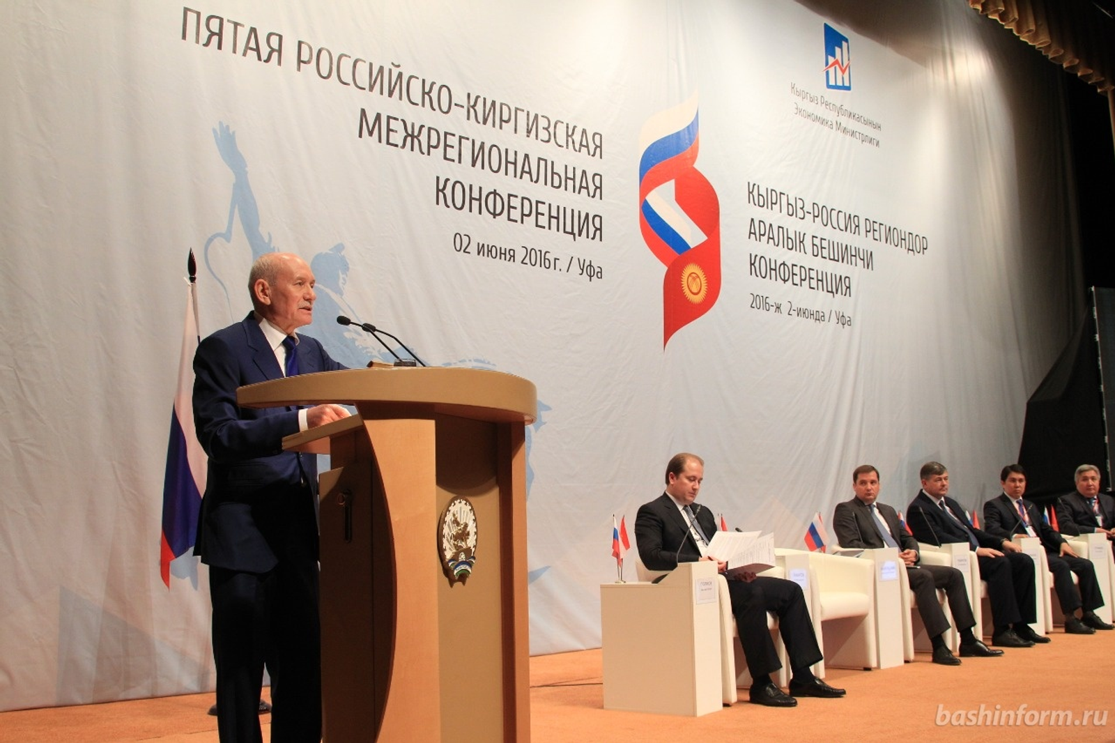 ӨФӨ, 2016 йыл, 3 июнь. /«Башинформ» мәғлүмәт агентлығы, Александр Смирнов/. 2 июндә Өфөләге Конгресс-холда Башҡортостан Башлығы Рөстәм Хәмитов «Евразия интеграция процесы контексында төбәк-ара бәйләнештәрҙе үҫтереү» V Рәсәй-Ҡырғыҙстан төбәк-ара конференцияһының пленар ултырышында