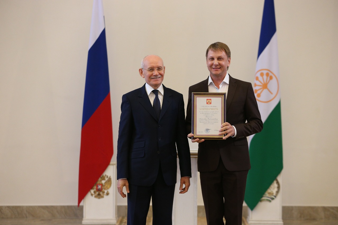 ӨФӨ, 2016 йыл, 1 июль. /«Башинформ» мәғлүмәт агентлығы, Александр Смирнов/. 30 июндә Өфөлә Башҡортостан Башлығы Рөстәм Хәмитов Рәсәйҙең һәм Башҡортостандың дәүләт наградаларын тапшырҙы. Сәнәғәт, төҙөлөш һәм архитектура, транспорт, ауыл хужалығы, ветеринария, аҙыҡ-түлек индустрияһы һәм йәмәғәт туҡланыуы, дәүләт хеҙмәте, муниципаль идара итеү, һаулыҡ һаҡлау, мәғариф, мәҙәниәт һәм сәнғәт, матбуғат һәм киң мәғлүмәт саралары өлкәләрендә эшләгән 57 хеҙмәткәр, шулай уҡ профсоюз хәрәкәте эшмәкәрҙәре ордендар, почет грамоталары, исемдәр һәм рәхмәт хаттары менән бүләкләнде.