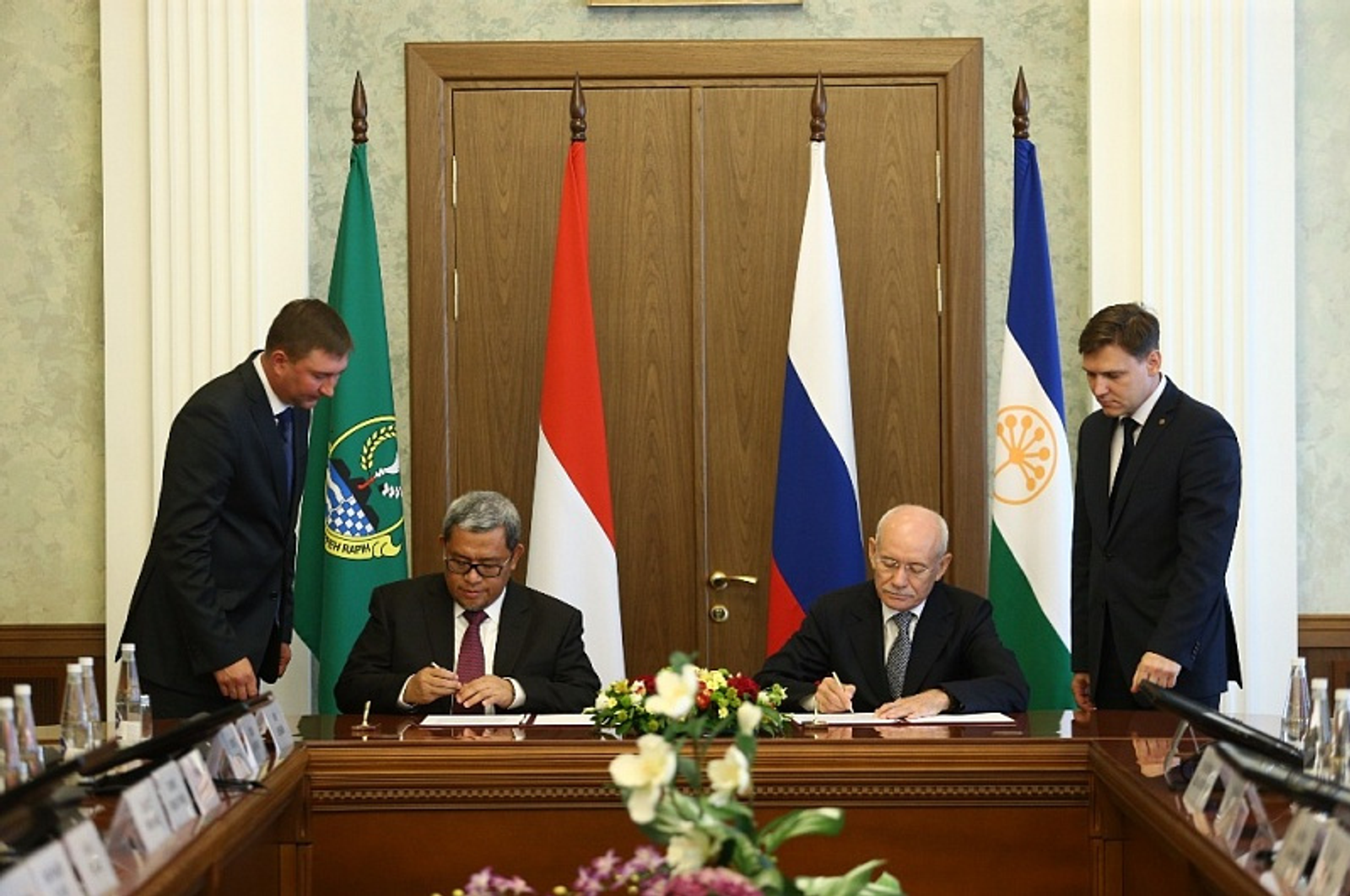 ӨФӨ, 2017 йыл, 2 август. /«Башинформ» мәғлүмәт агентлығы, Ксения Калинина/. Башҡортостан Хөкүмәте Йортонда 2 августа Индонезия Республикаһының Көнбайыш Ява провинцияһының рәсми делегацияһы менән осрашыу сиктәрендә республиканың ошо провинция менән сауҙа-иҡтисади, инвестиция, ғилми-техник, социаль-гуманитар һәм мәҙәни өлкәләрҙә хеҙмәттәшлекте үҫтерергә ниәтләнеүе тураһында протокол төҙөлдө. Документҡа Башҡортостан Башлығы Рөстәм Хәмитов һәм Көнбайыш Ява провинцияһы губернаторы Әхмәд Херьяван ҡул ҡуйҙы.