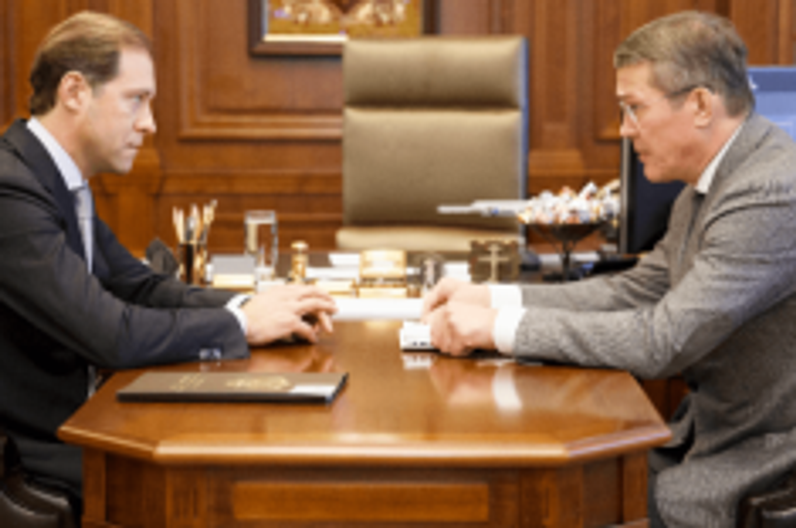 ӨФӨ, 2018 йыл, 20 декабрь. /«Башинформ» мәғлүмәт агентлығы/. Рәсәй Сәнәғәт һәм сауҙа министрлығында ведомство етәксеһе Денис Мантуровтың Башҡортостан Республикаһы Башлығы вазифаһын ваҡытлыса башҡарыусы Радий Хәбиров менән эшлекле осрашыуы уҙҙы.