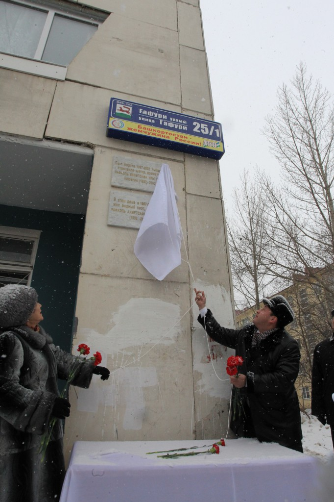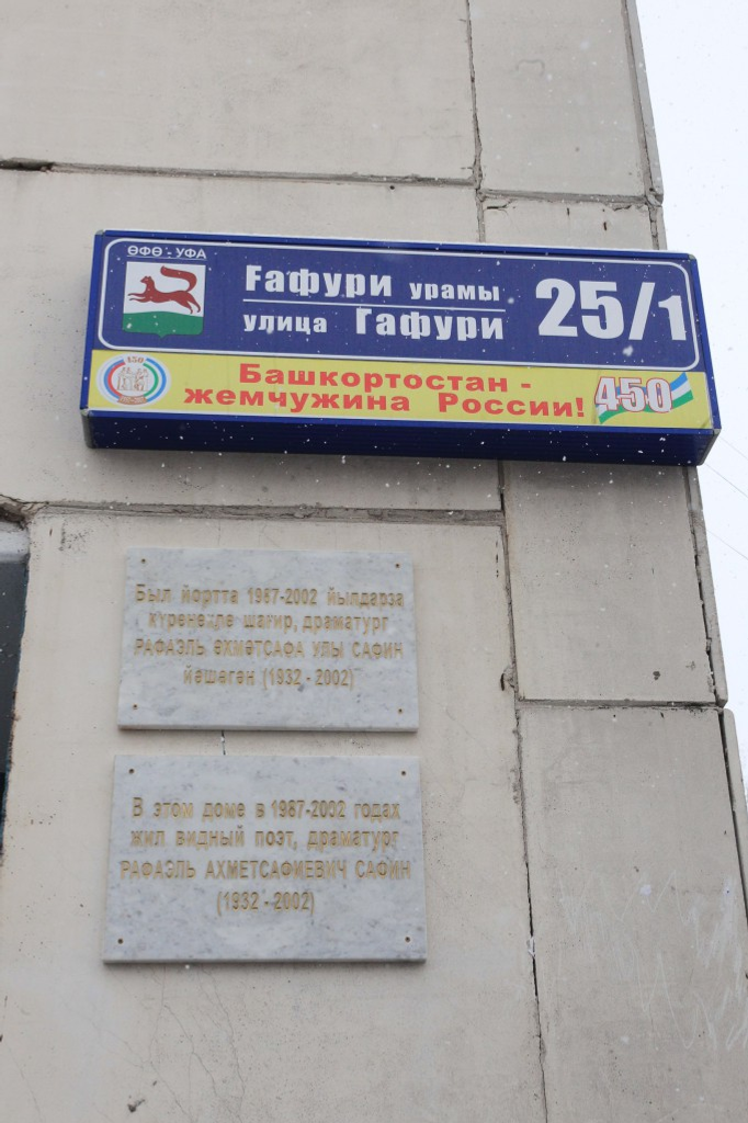 Ғафури урамында урынлашҡан 25/1 һанлы йортта Рафаэль Сафинға мемориаль таҡтаташ асылды.