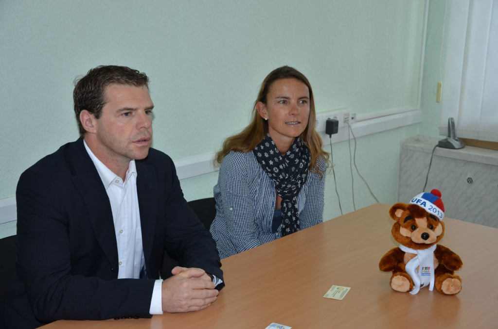 Өфөгә эш сәфәре менән Роман Улехла (Словакияның Хоккей федерацияһы), Мануэле Челио һәм Клаудиа Челио-Ламбриггер (Швейцария Хоккей федерацияһы) килде. Башҡортостандың баш ҡалаһы менән танышыу, ҡунаҡханаларҙы һәм 2013 йылда йәштәр командалары араһында хоккей буйынса донъя чемпионаты уйындары үтәсәк боҙ ареналарын ҡарау визиттың төп маҡсаты ине.