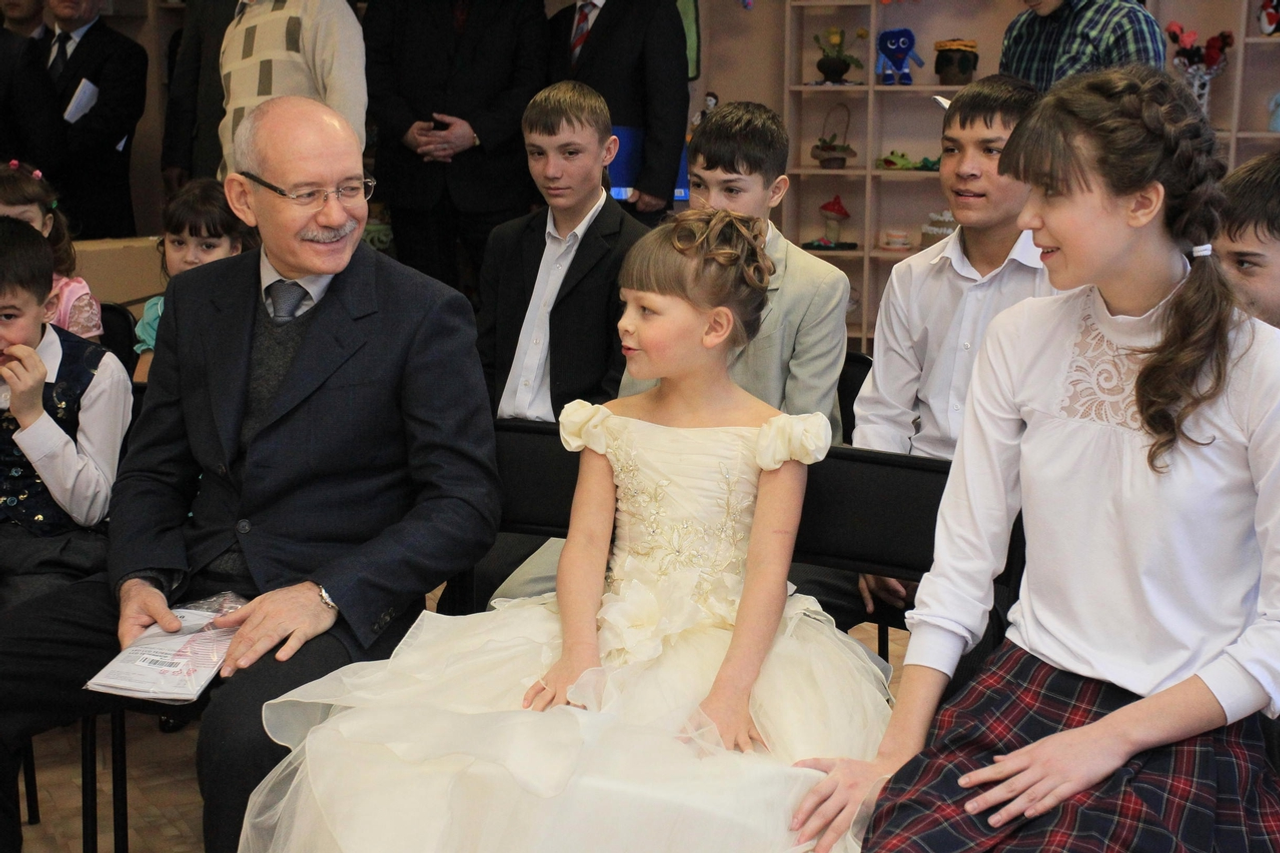 Төркөмдәрҙең береһендә малайҙар һәм ҡыҙҙар Президентҡа үҙҙәре ижад иткән шиғырҙарҙы һөйләп ишеттерҙе. Йыйылыштар залында Башҡортостан Президенты балалар йортонда тәрбиәләнеүселәр менән яһалған эштәр күргәҙмәһен ҡараны. Экспонаттарҙың береһен – аҡ сәскә гөлләмәһен – балалар Рөстәм Хәмитовҡа бүләк итте. Шулай уҡ бәләкәй артистар ҙур булмаған концерт ойошторҙо.