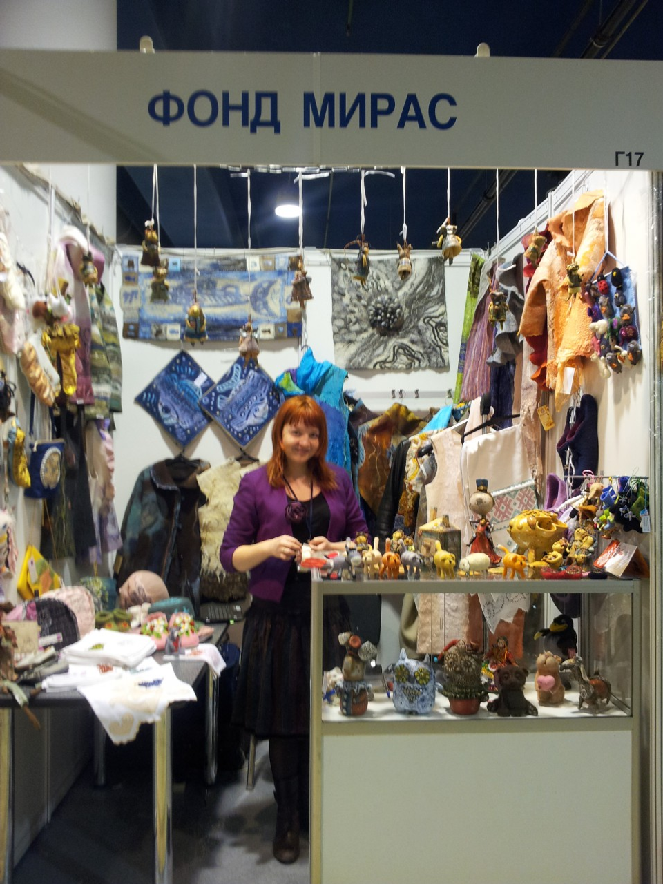 – Беҙҙең стендта күлдәктәр, жакеттар, баш кейеме, аяҡ кейеме, биҙәүестәр, бейәләйҙәр тәҡдим ителде. Шулай уҡ ҡурсаҡтар, уйынсыҡтар, яулыҡтар һәм башҡа изделиелар алып килдек, - тип һөйләне «Башинформ» агентлығына «Мираҫ» хәйриә фондының генераль директоры Илшат Иманғолов.