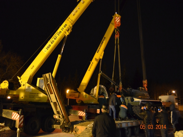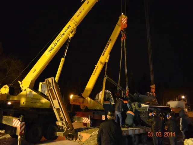 Т-55 Пенза өлкәһенең Сердобск ҡалаһынан килгән, Алыҫ Көнсығышта хеҙмәт иткән. Танктың даими тороу урынына тиклем килтереүҙе Өфөнөң Коммуналь хужалығы идаралығына, ә урынлаштырыуҙы – баш ҡаланың Граждандарҙы яҡлау идаралығына ышанып тапшырҙылар.