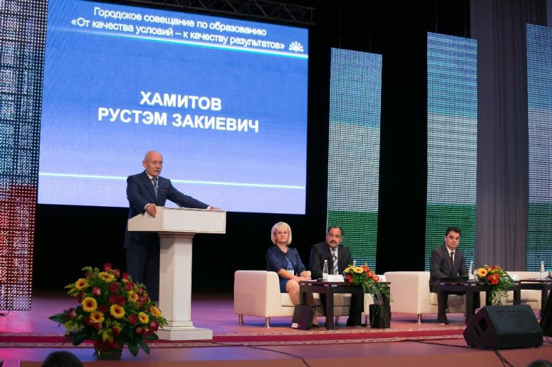 Рөстәм Хәмитов Өфө ҡалаһының мәғариф буйынса август кәңәшмәһенең пленар ултырышында сығыш яһаны. Республика етәксеһенең уҡытыусылар менән осрашыуы 26 августа Ҡала мәҙәниәт һарайында үтте.