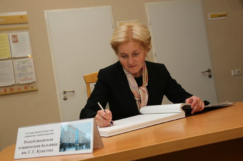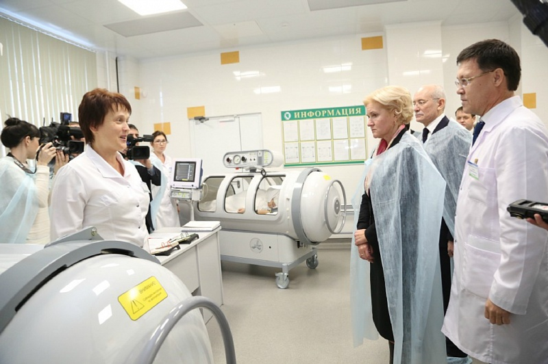 Ольга Голодец бала табыуға әҙерлек бүлегендә булды, бер һәм ике урынлыҡ палаталарҙың уңайлыҡтарын баһаланы. Шулай уҡ операция, реанимация һәм диагностика бүлексәләрендә булды, унда клиниканың иң заманса ҡорамалдар менән йыһазландырылыуына инанды. Вице-премьер интенсив терапия бүлектәре менән неонаталь блокты ҡараны, әлеге ваҡытта унда бик бәләкәй тән ауырлығы менән тыуған сабыйҙарҙы ҡарайҙар. Бала табыу йортонда иң «еңел» бала 790 грамм ауырлыҡта тыуған.