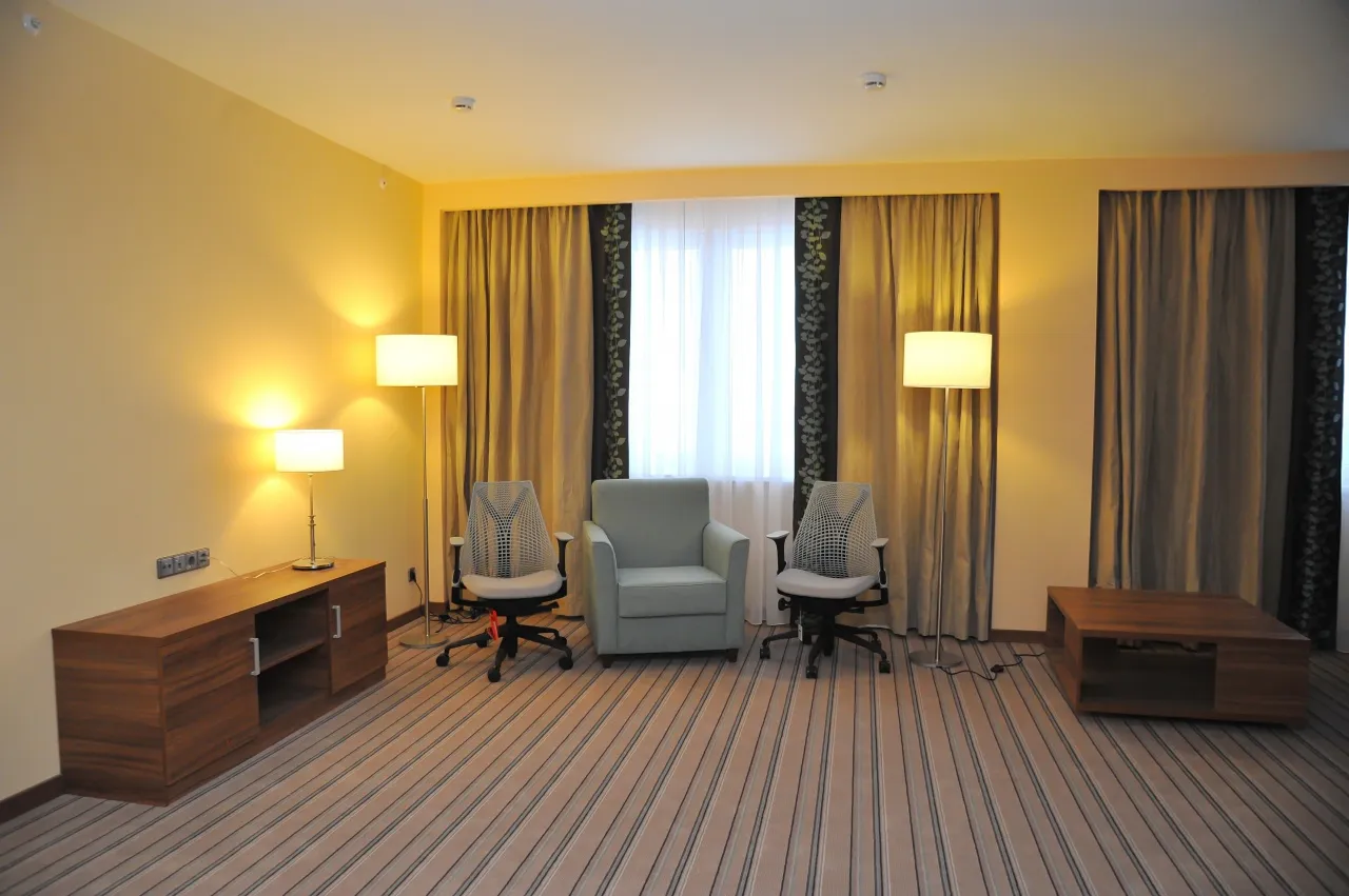 Рөстәм Хәмитов «Hilton Garden Inn Ufa» ҡунаҡханаһындағы конференция залдарын, ресторанды һәм номер фондын ҡараны, интернеттың тиҙлеген тикшерҙе.