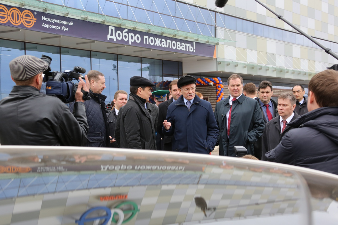 ӨФӨ, 2015 йыл, 10 апрель. /«Башинформ» мәғлүмәт агентлығы, Илья Спиридонов/. 10 апрелдә Башҡортостан Башлығы Рөстәм Хәмитов «Өфө» халыҡ-ара аэропортының яңы терминалын