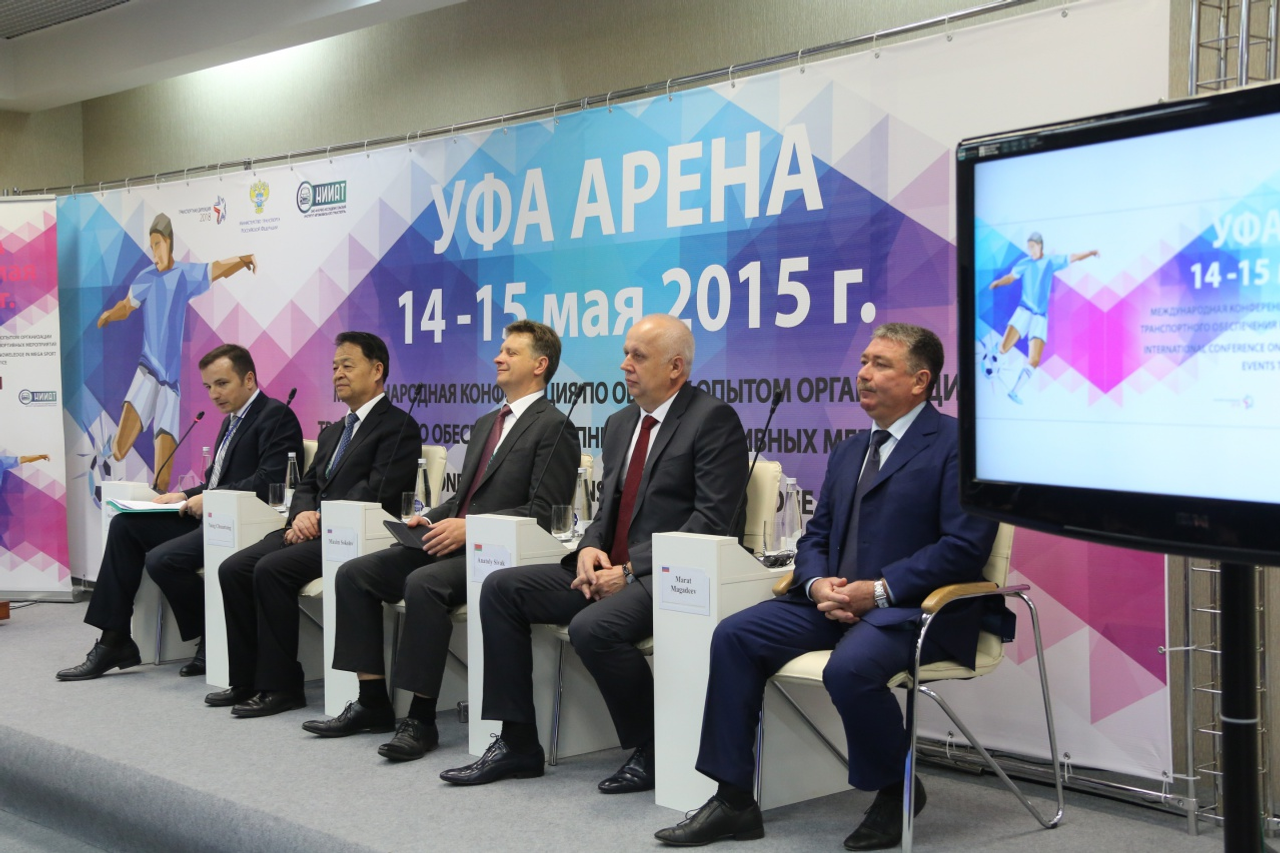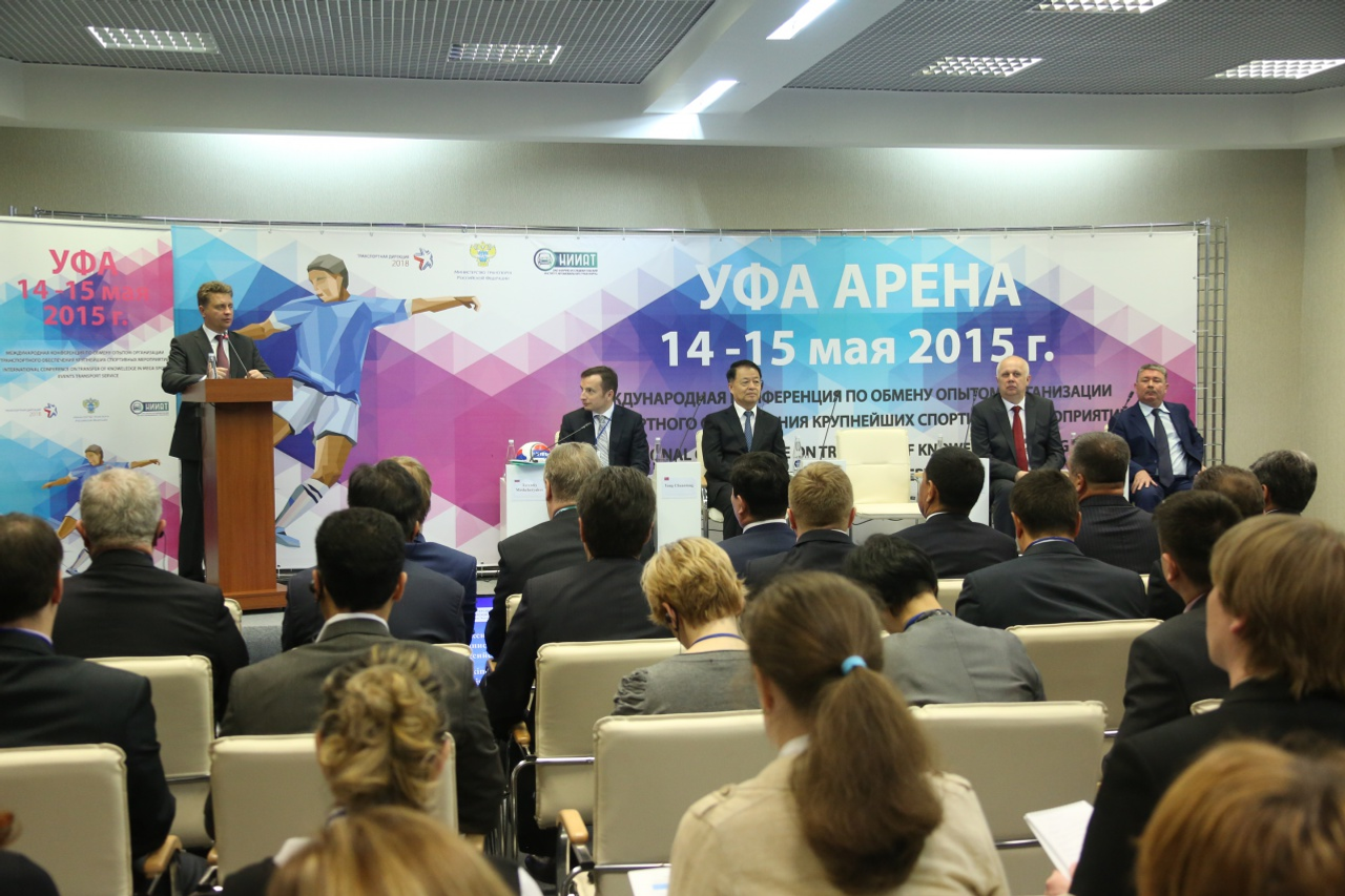 ӨФӨ, 2015 йыл, 15 май. /«Башинформ» мәғлүмәт агентлығы, Эльвира Латипова, Арина Рәхимҡолова/. «Өфө-Арена» комплексында спорт сараларын транспорт менән тәьмин итеүҙе ойоштороу тәжрибәһе менән алмашыу буйынса халыҡ-ара конференция