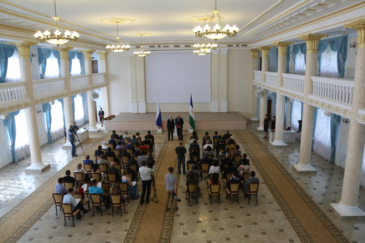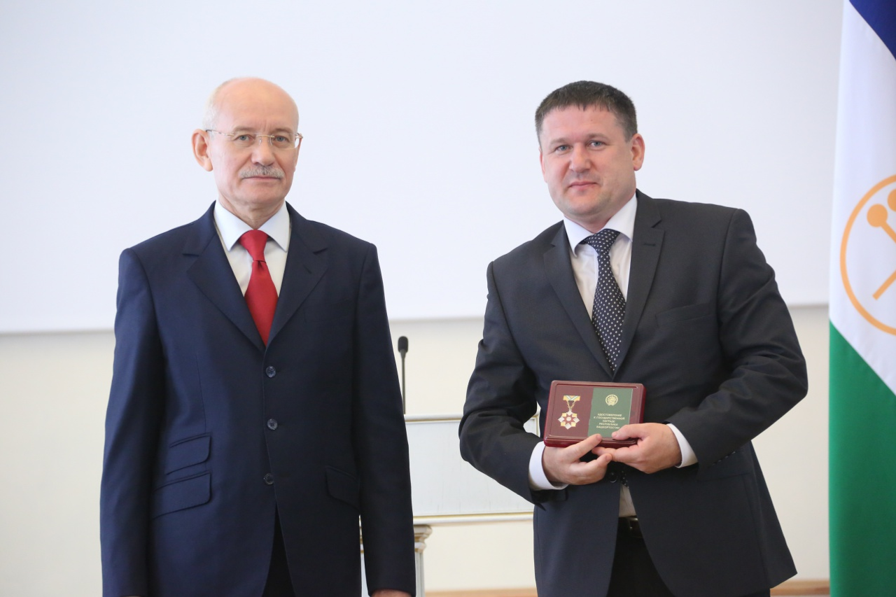 ӨФӨ, 2015 йыл, 29 май. /«Башинформ» мәғлүмәт агентлығы, Илья Спиридонов/. 29 майҙа Өфөлә Башҡортостан Башлығы Рөстәм Хәмитов Рәсәйҙең һәм Башҡортостандың дәүләт наградаларын тапшырҙы. Сәнәғәт, энергетика, төҙөлөш, ауыл хужалығы, транспорт, социаль өлкә, дәүләт хеҙмәте, муниципаль идаралыҡ, әҙәбиәт һәм сәнғәт, мәҙәниәт, фән һәм киң мәғлүмәт саралары өлкәләрендә эшләгән 45 хеҙмәткәрҙең, шулай уҡ йәмәғәт эшмәкәрҙәренең һөнәри ҡаҙаныштары ордендар, маҡтаулы исемдәр, почет грамоталары, рәхмәт хаттары менән билдәләнде.