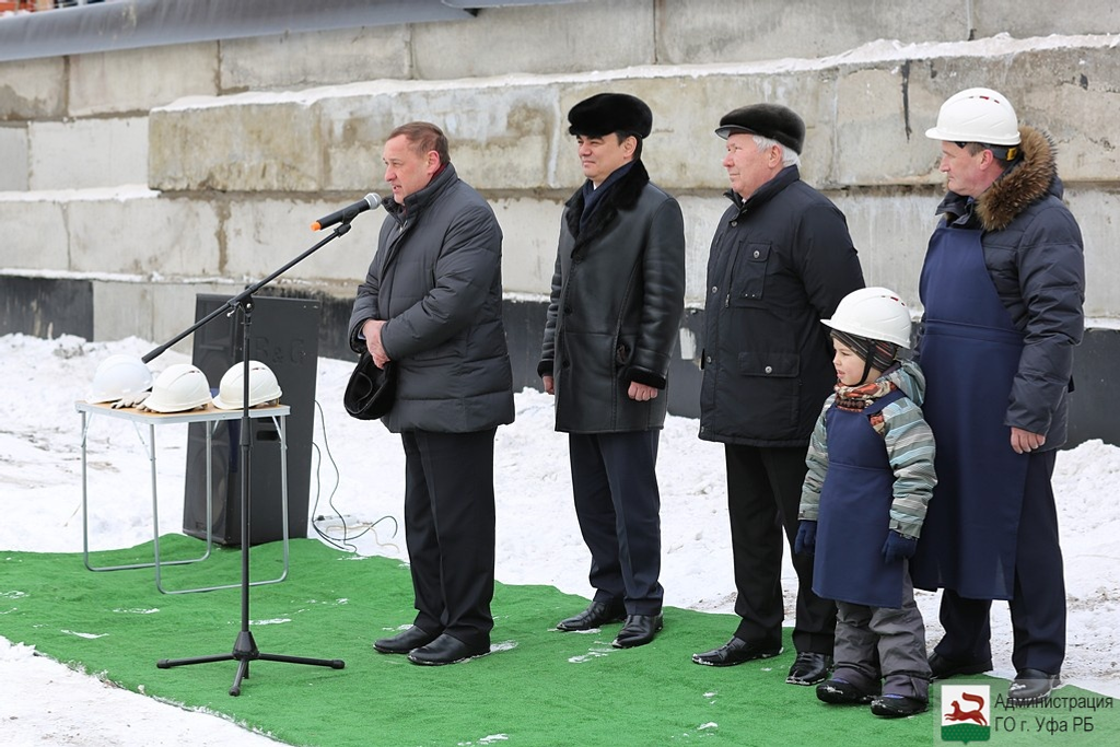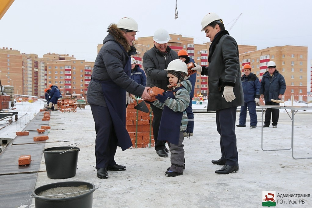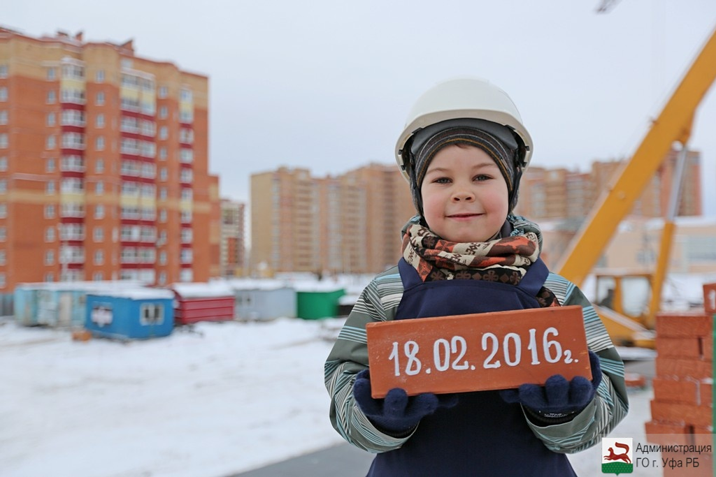 ӨФӨ, 2016 йыл, 18 февраль. /«Башинформ» мәғлүмәт агентлығы, Ксения Калинина/. Кесаҙна, 18 февралдә, Өфөләге «Дим-8» биҫтәһендә буласаҡ директор Рәмил Фәйезов һәм биш йәшлек Богдан яңы мәктәпкә тәүге нигеҙ ташын һалды.