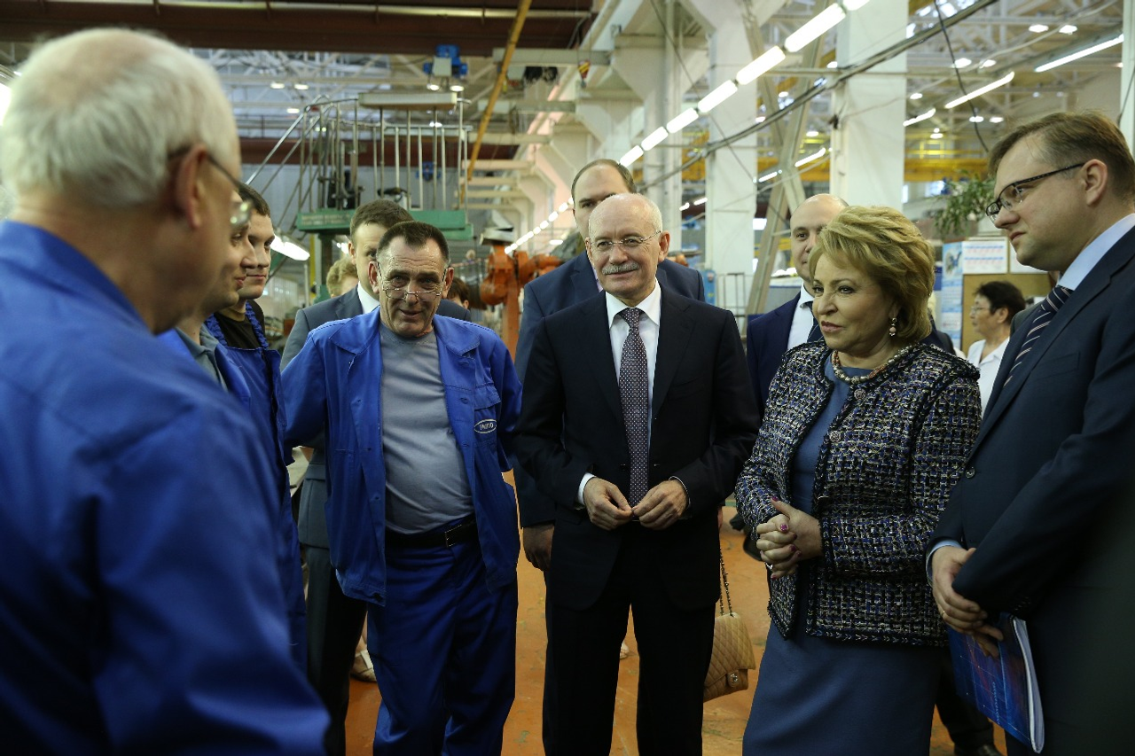Валентина Матвиенко һәм Рөстәм Хәмитов «Өфө моторҙар эшләү производство берекмәһе» асыҡ акционерҙар йәмғиәтендә булды