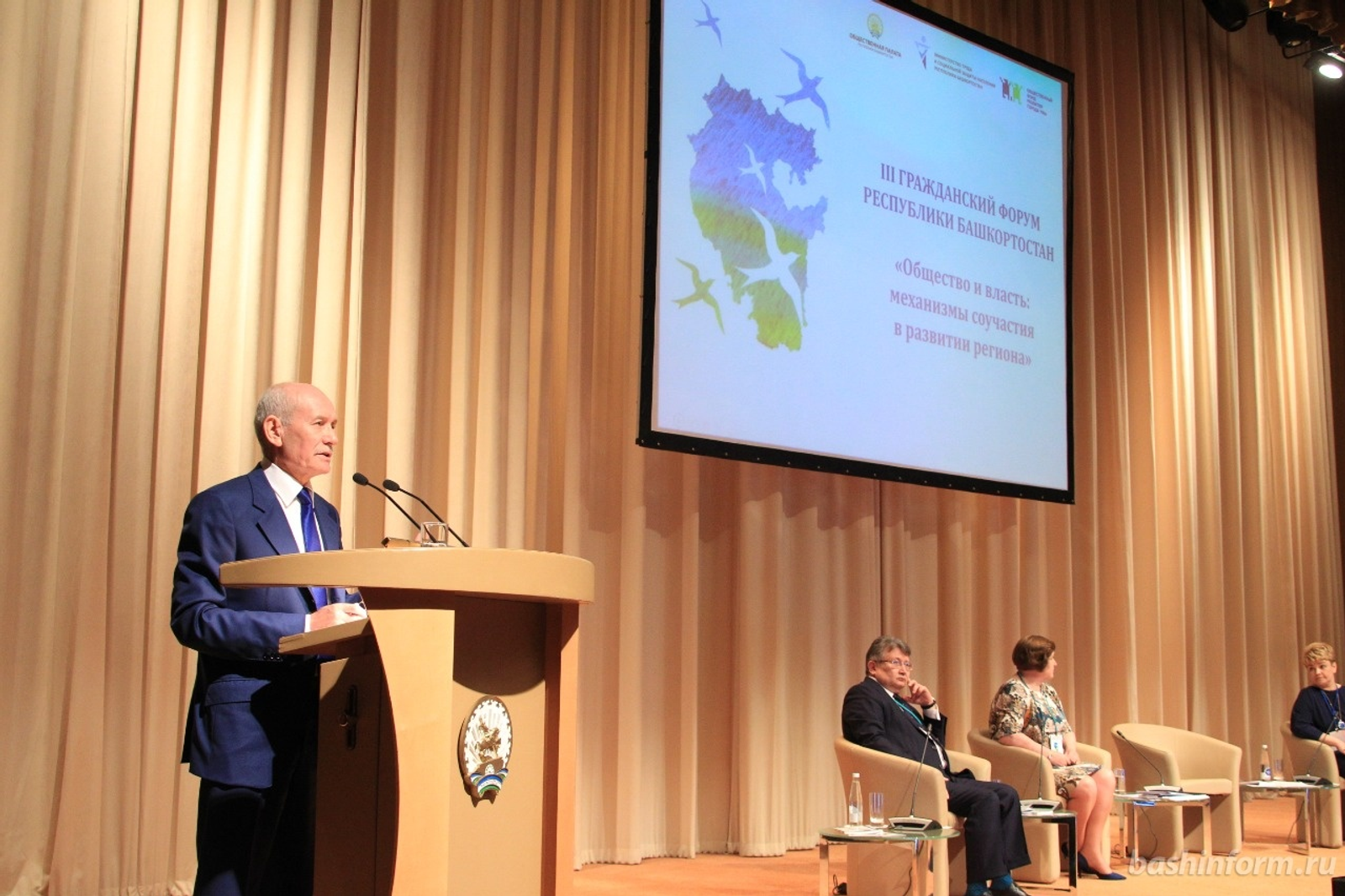 ӨФӨ, 2016 йыл, 25 май. /«Башинформ» мәғлүмәт агентлығы, Александр Смирнов/. 24 майҙа Өфөләге Конгресс-холда Башҡортостан Башлығы Рөстәм Хәмитов III Граждандар форумының пленар ултырышында