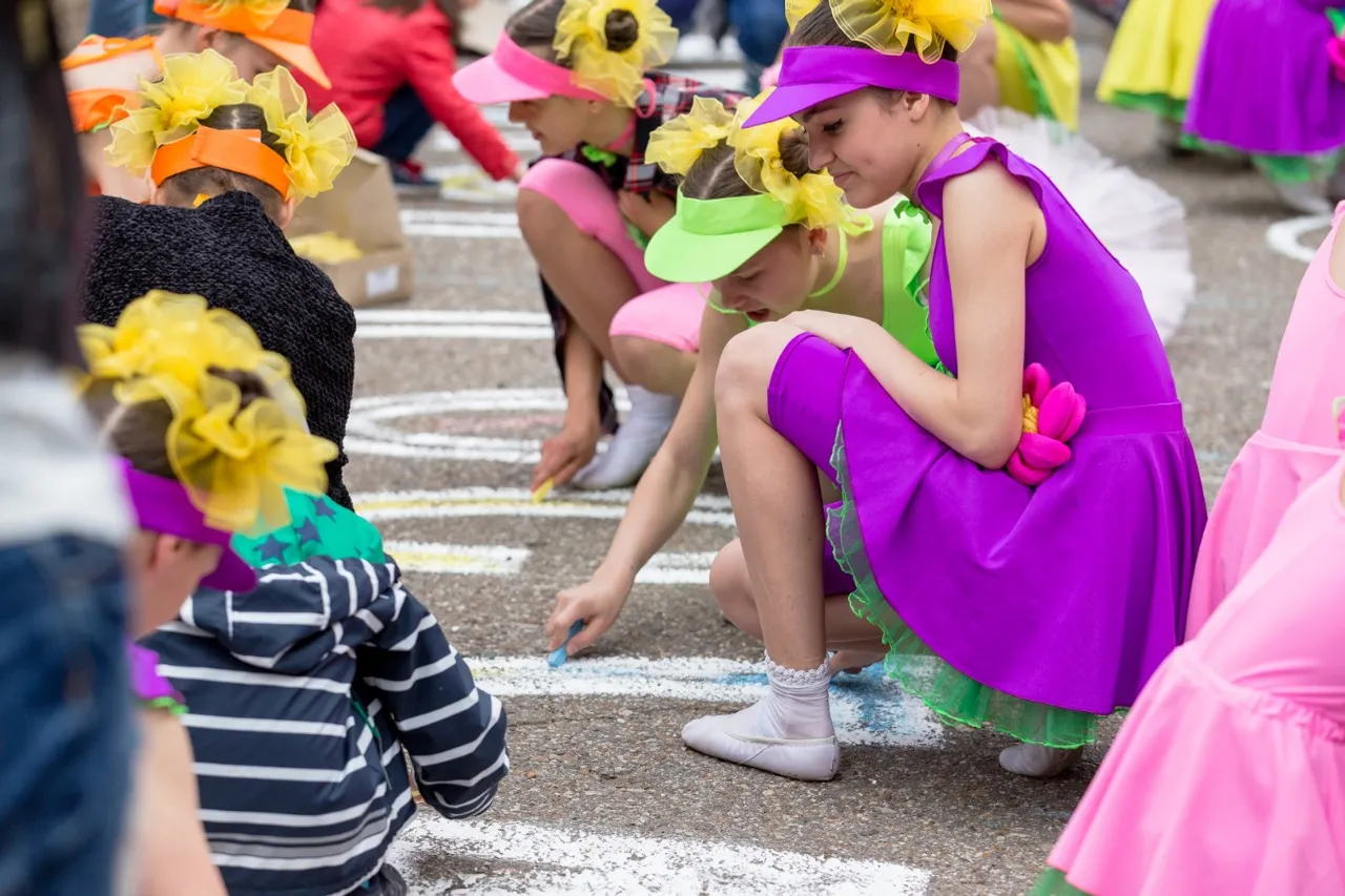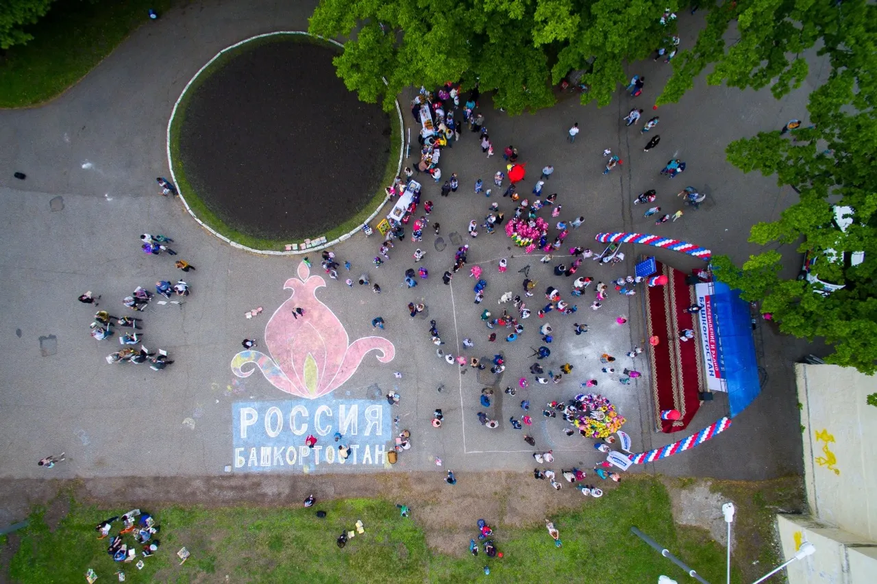 Өфөләге Аксаков исемендәге баҡсала балалар өсөн ҙур байрам ойошторолдо. Унда ҡатнашыусылар һәм ҡунаҡтар бергәләп асфальтта ҙур ал сәскә һүрәтен төшөрҙө.