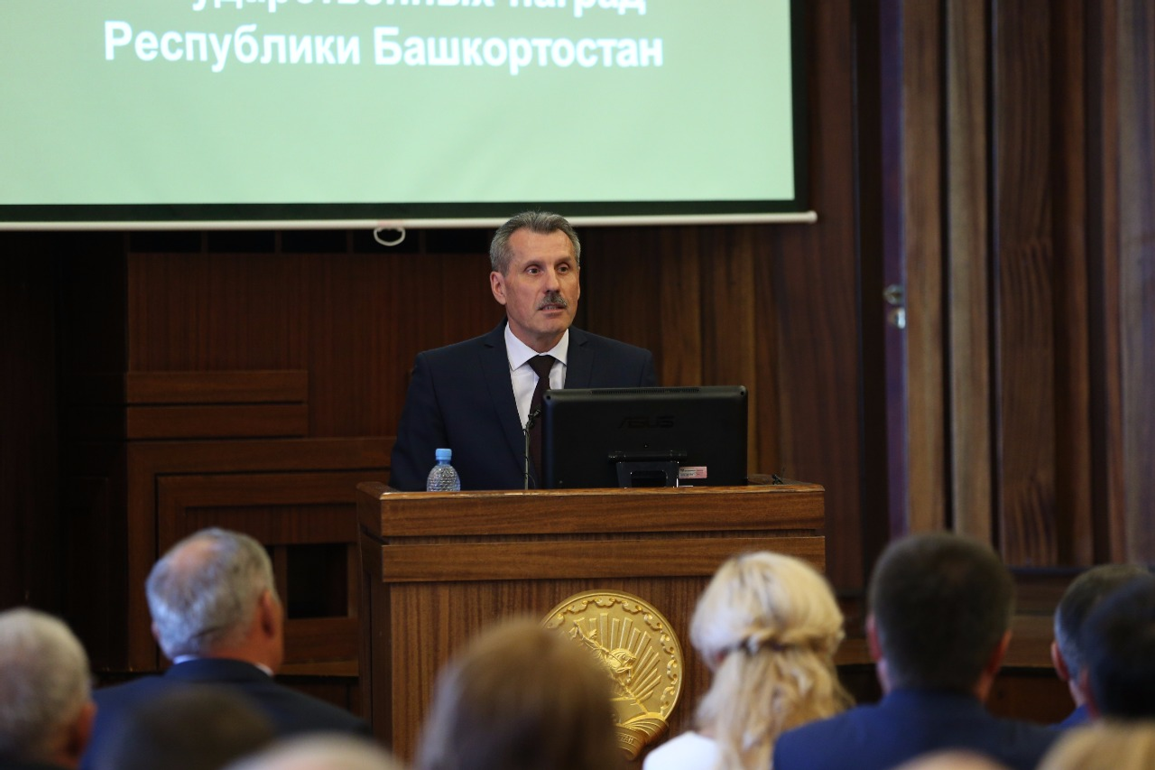 уҙҙы. Хөкүмәт наградаларын һәм маҡтаулы исемдәрҙе Башҡортостан Башлығы Хакимиәте етәксеһе Сергей Молчанов тапшырҙы. Ул бүләкләнеүселәргә Рөстәм Хәмитов исеменән намыҫлы хеҙмәттәре, төбәктең социаль-иҡтисади үҫешенә тос өлөш индергәндәре өсөн рәхмәт белдерҙе.