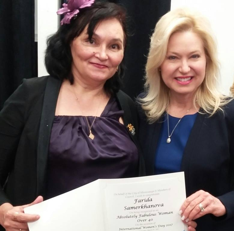 Миссиссаги ҡалаһы (Онтарио провинцияһы) мэры Фәриҙә Сәмерхановаға ижтимағи эше өсөн грамота тапшырҙы.