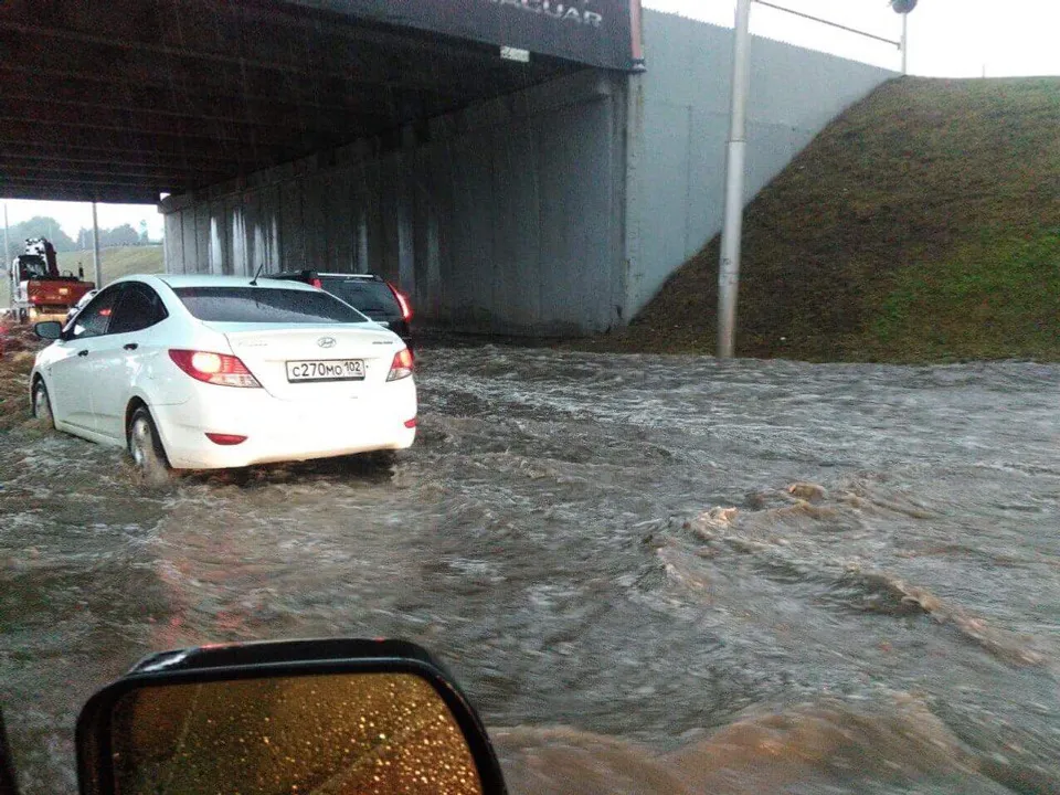 ӨФӨ, 2017 йыл, 4 сентябрь. /«Башинформ» мәғлүмәт агентлығы, Ольга Мортазина/. Өфөлә һуңғы айҙағы көслө ямғыр ҡоя. Синоптиктар фаразлауынса, ҡалала 10 миллиметр самаһы — 1 квадрат метр майҙанға 10 литр ямғыр яуырға тейеш ине. Ысынында иһә күберәк яуғандыр, моғайын. Урамдар һәм тротуарҙар шунда уҡ һыу аҫтында ҡалды, йәйәүлеләр тубыҡтан һыу кисеп йүгерә, һыу автомобилдәрҙең радиаторҙарына еткән, ә шәп тиҙлектә килгән машиналар ҙур тулҡындар сәсрәтеп үтә.