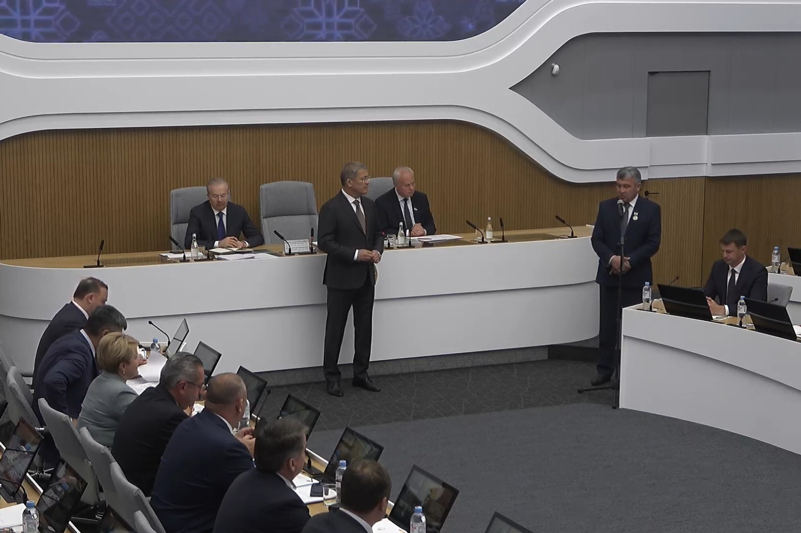 Башҡортостан Башлығы Радий Хәбиров бөгөн аҙналыҡ оператив кәңәшмәлә республиканың Ветеринария буйынса дәүләт комитеты етәксеһе Азат Йыһаншинды «Хеҙмәт батырлығы өсөн» миҙалы менән бүләкләне. 3 сентябрҙә уға 50 йәш тулды.