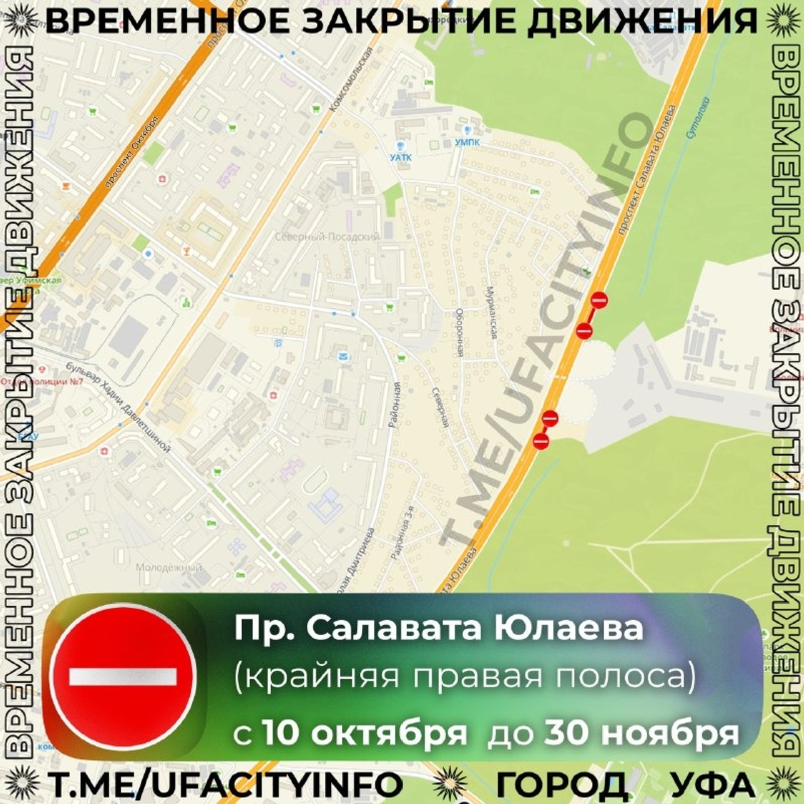 Башҡортостандың баш ҡалаһында 10 октябрҙән 30 ноябргә тиклем Салауат Юлаев проспектында хәрәкәт сикләнде, тип хәбәр итте Өфө мэрияһы. Һүҙ тоннель төҙөлә башлаған урында СССР-ҙың 50 йыллығы урамы яғына илткән ситке уң һыҙатты ябыу тураһында бара.
