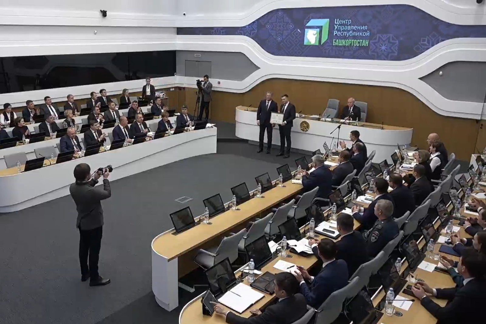 Башҡортостан Башлығы бөгөн хөкүмәттең оператив кәңәшмәһен бүләкләү тантанаһынан башланы.