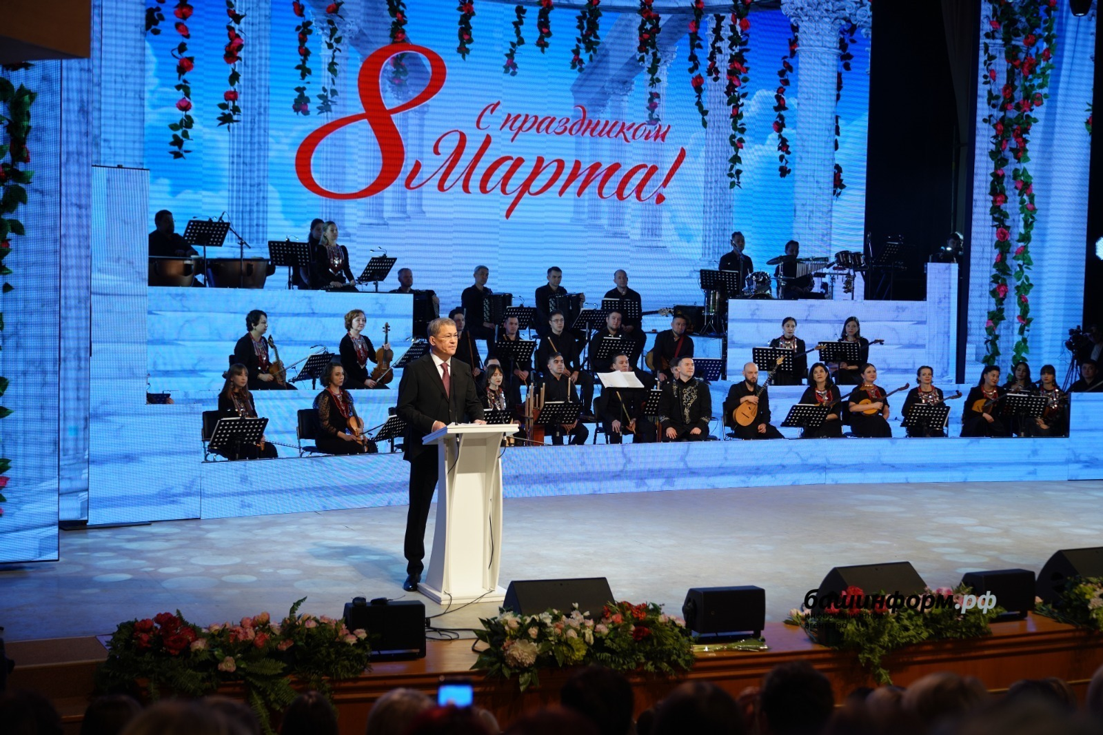 Ҡатын-ҡыҙҙар байрамына арналған тантаналы сарала ҡатнашыусылар шулай уҡ Башҡортостан сәнғәт оҫталарының байрам концертын ҡараны.