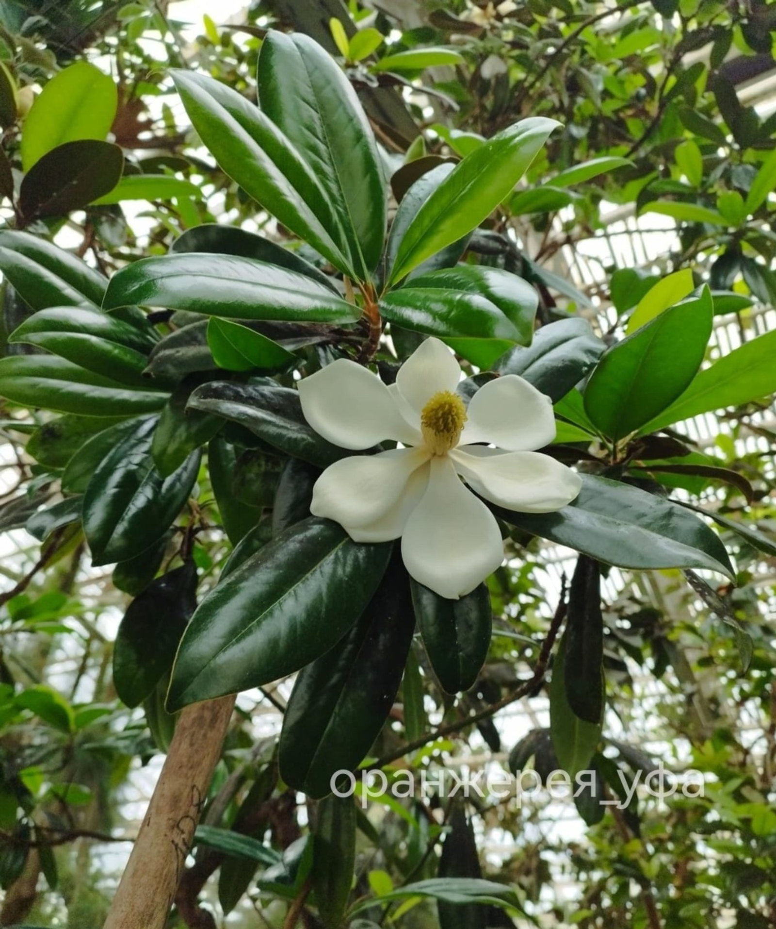 «Үтә иғтибарлы ҡунаҡтар ғына япраҡтар араһынан ошо матурлыҡты күрергә мөмкин. Тәбиғәттә 30 метрға тиклем бейеклектәге мәңге йәшел ағасты Төньяҡ Американың көньяҡ-көнсығышында осратырға була. Уның сәскәләренең хуш еҫе бер кемде лә битараф ҡалдырмаясаҡ», — тип хәбәр итте оранжерея хеҙмәткәрҙәре социаль селтәрҙә.