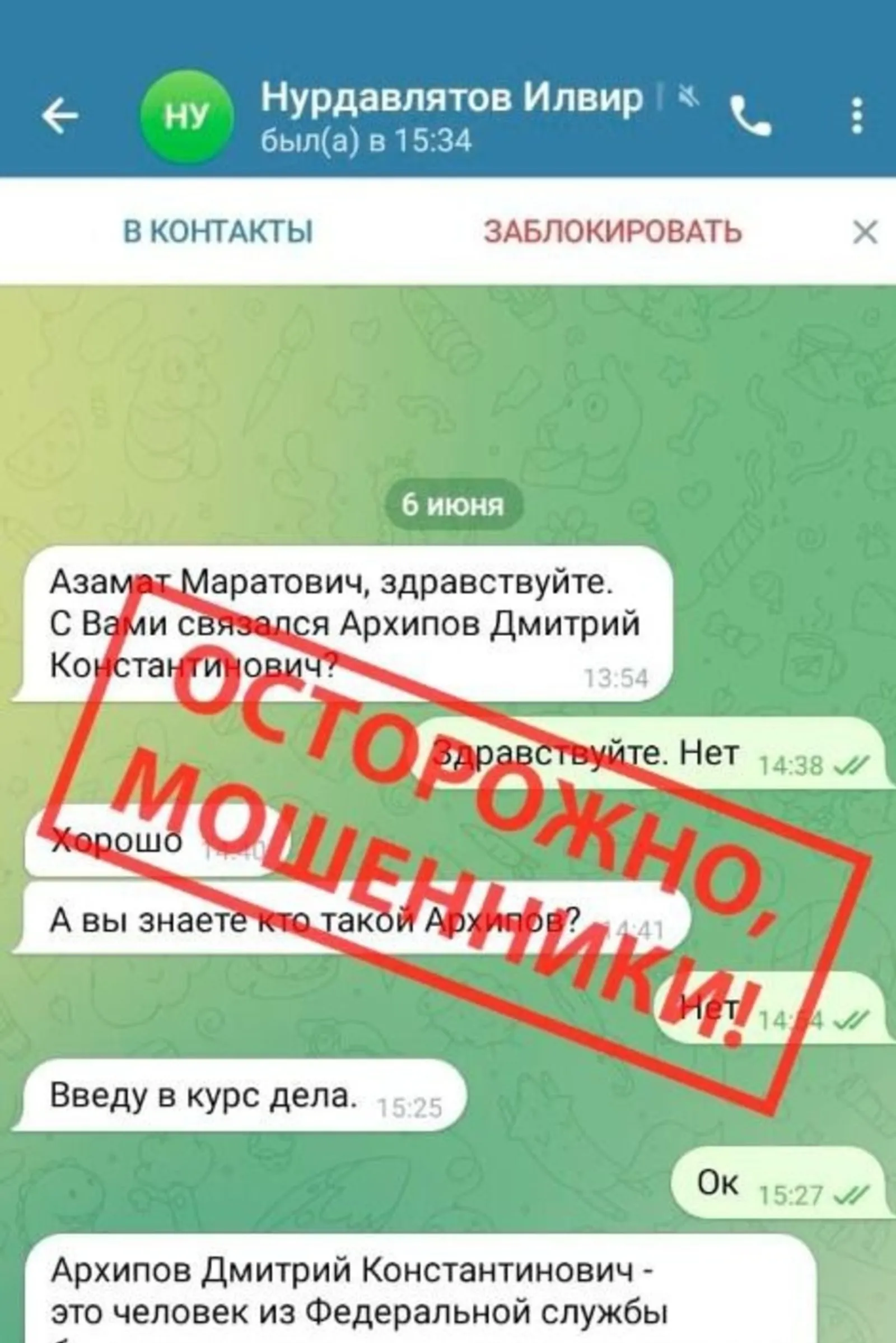 Өфөнөң Киров районы хакимиәте башлығы Илвир Нурдәүләтов үҙенең телеграм-каналында яҙылыусыларын уның исеменән эш иткән мутлашыусылар хаҡында иҫкәртә.