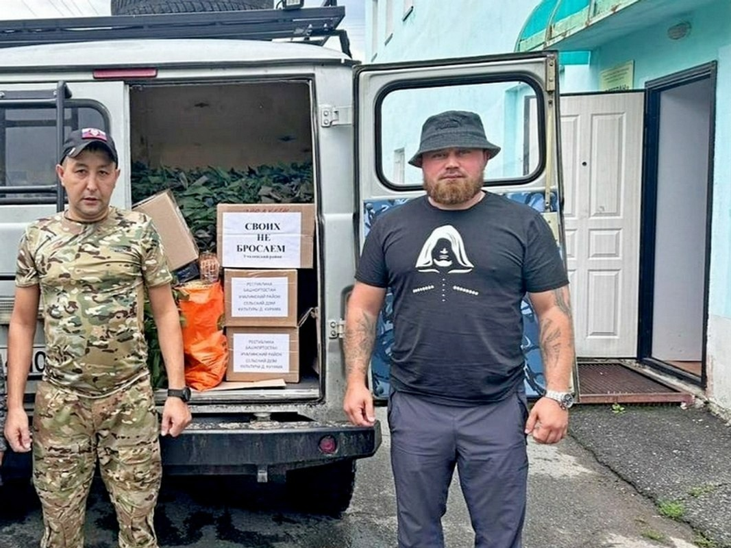 Гуманитар ылауҙы Төньяҡ хәрби округы ветераны, Шайморатов генерал ордены кавалеры Рәил Ҡорамшин, «Юлдаш» һәм «Макар» позывнойлы хәрбиҙәр оҙата.